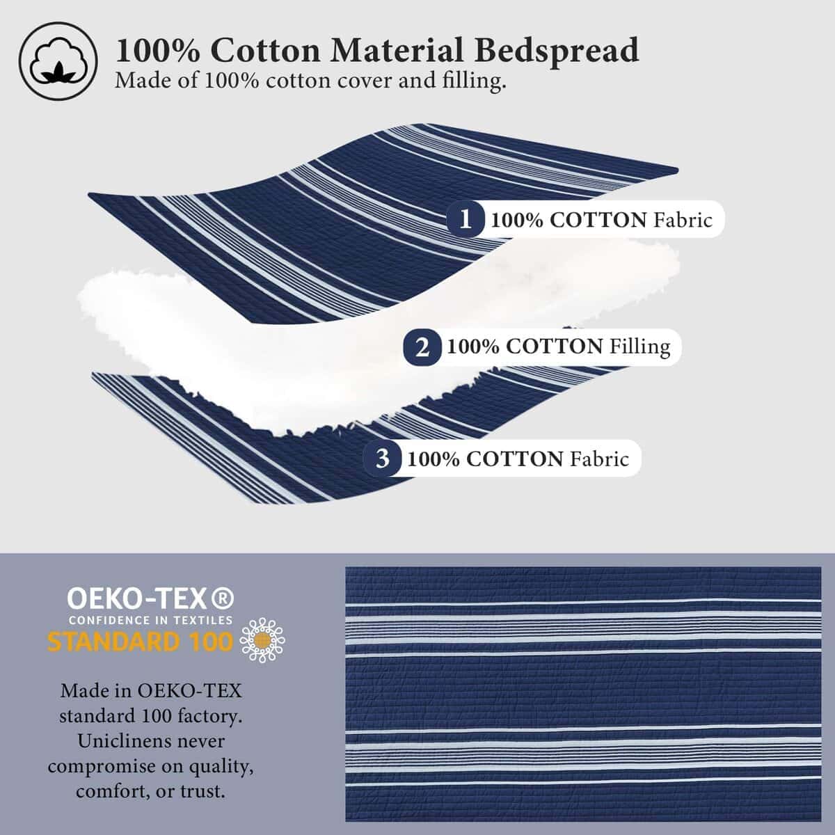 Juego de Edredón Queen Size Uniclinens, -Blanco/Azul Marino