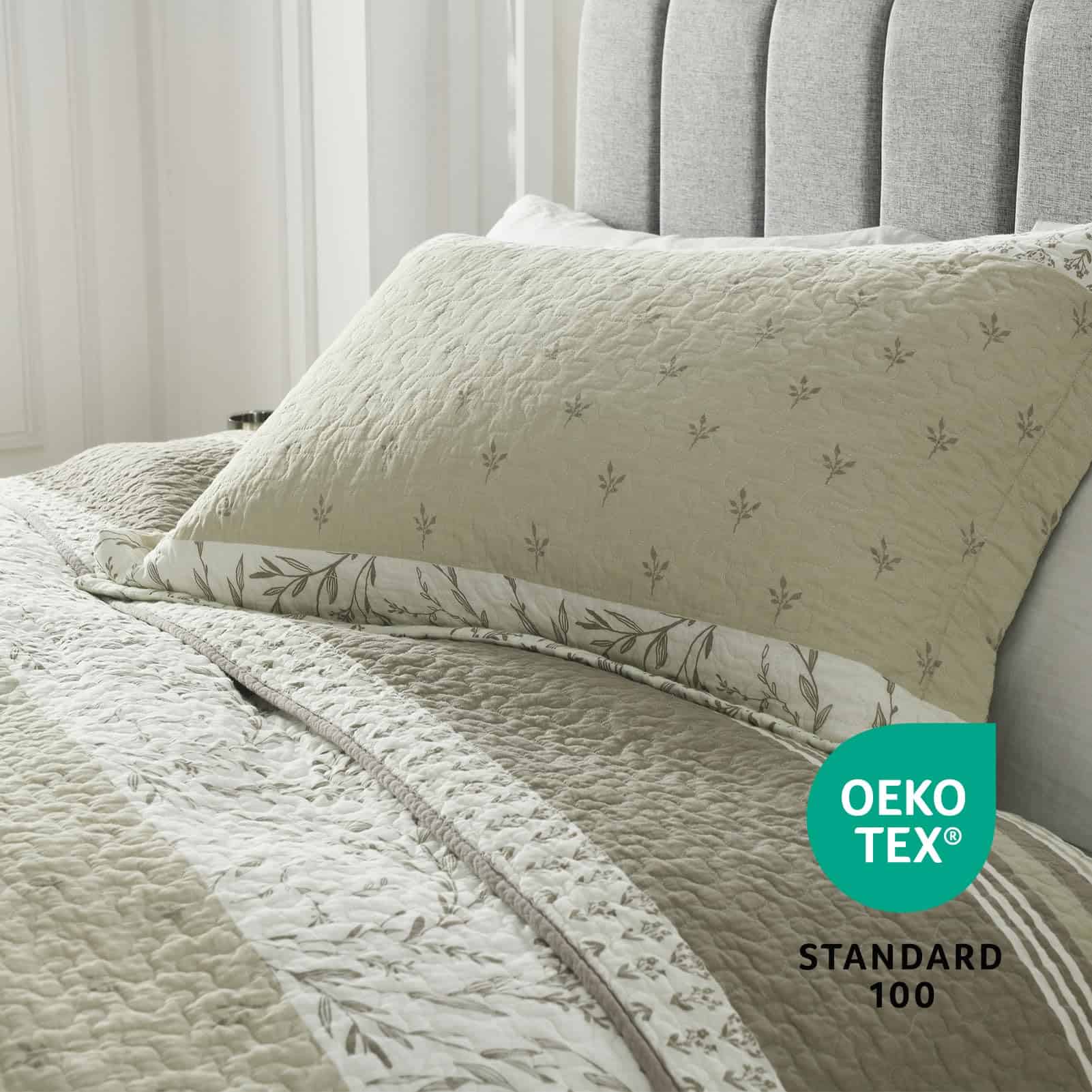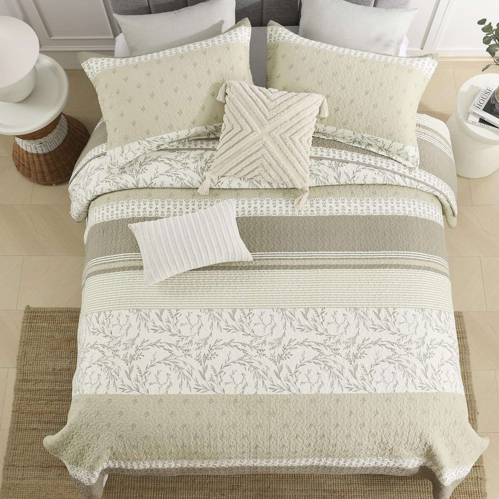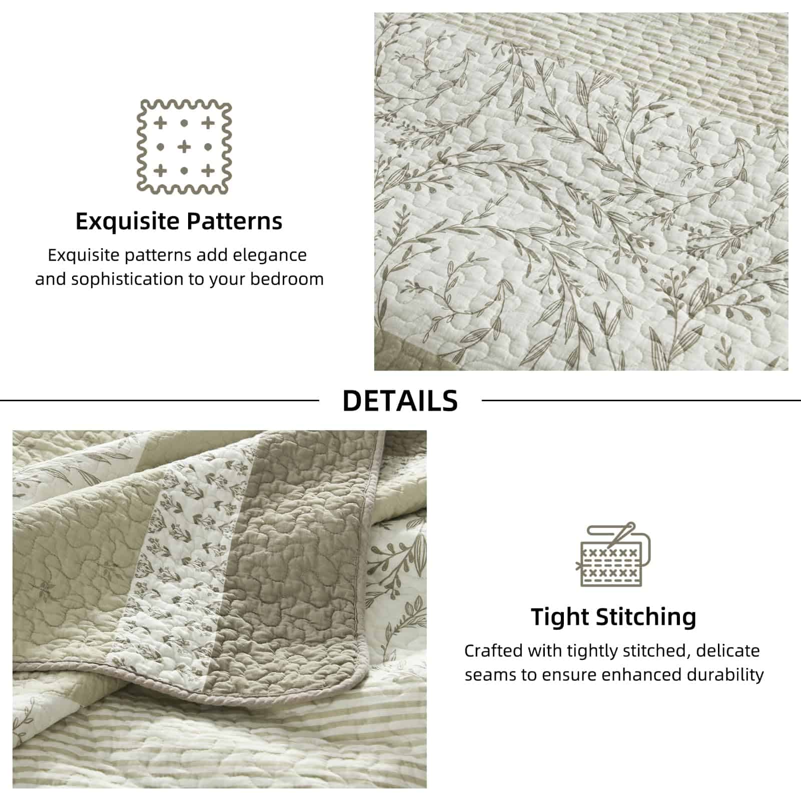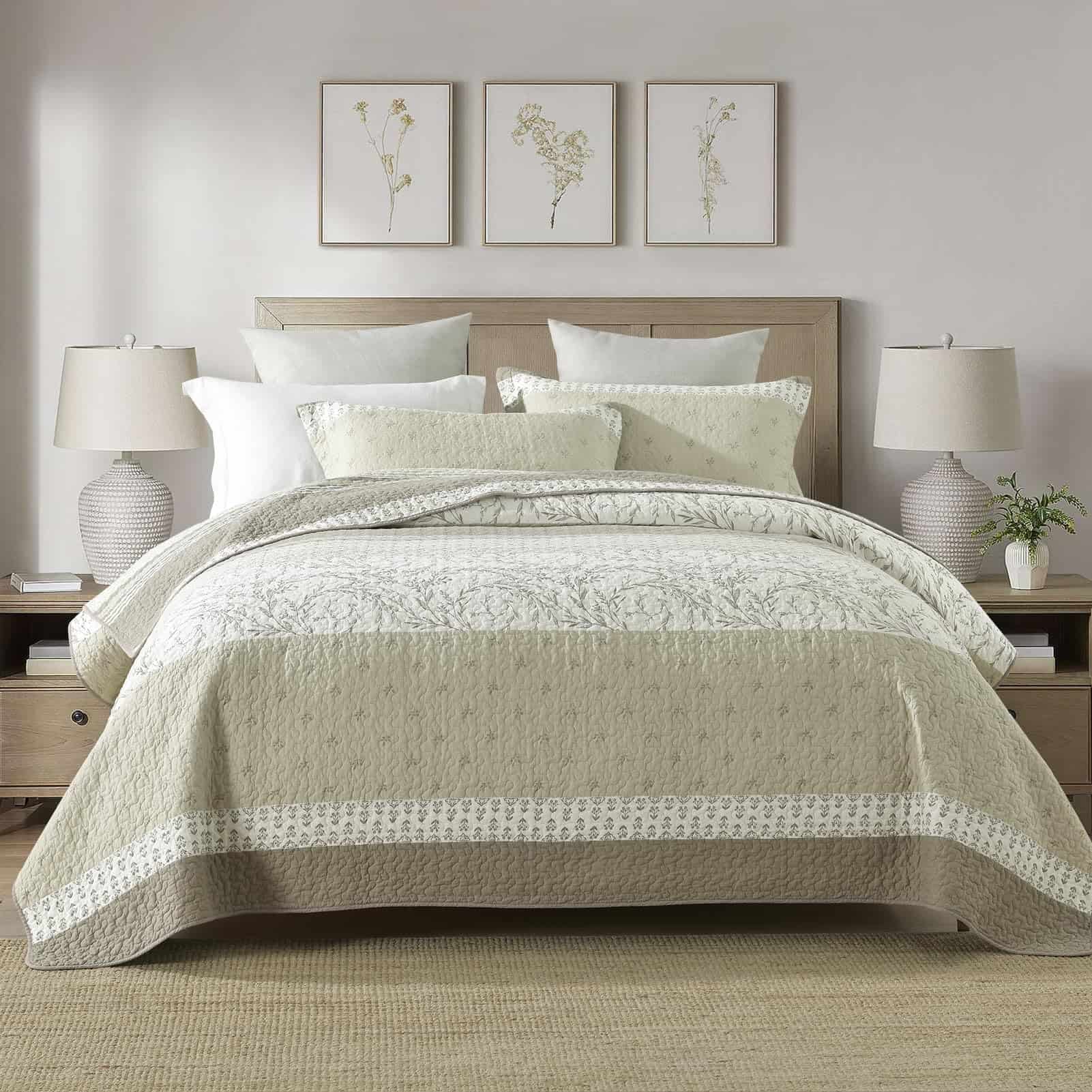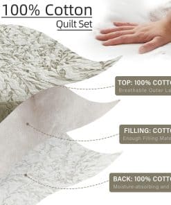 El juego de edredón VatinHK Queen Size 100% algodón es la opción perfecta para aquellos que buscan un conjunto de ropa de cama ligero y suave que sea versátil y elegante. El edredón está hecho de algodón 100% natural de alta densidad, garantizando una suavidad excepcional, transpirabilidad y comodidad durante toda la noche. Con un diseño único que combina rayas beige y diseño botánico, este edredón añade un toque suave y fresco a la decoración de cualquier dormitorio. El set incluye 1 edredón (90″x98″) y 2 fundas de almohada (20″x28″), haciendo de él una opción práctica y completa para tu cama. Está certificado por OEKO-TEX STANDARD 100, lo que asegura que los materiales son seguros y libres de sustancias nocivas. La exquisita artesanía se refleja en las costuras firmes y bordes suaves que mantienen el relleno de algodón uniforme y evitan grumos después del uso o lavado. Además, es fácil de mantener, ya que es lavable a máquina en agua fría y resiste la decoloración y el encogimiento. Perfecto para cualquier espacio, incluyendo dormitorio, sala de estar, habitación de invitados, oficina en casa, dormitorio universitario, caravana o camping, este set de edredón versátil y elegante es el regalo perfecto para Acción de Gracias, inauguraciones o cumpleaños.