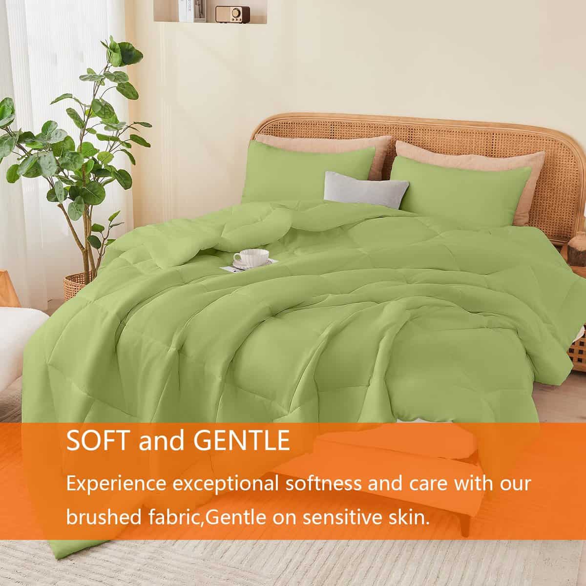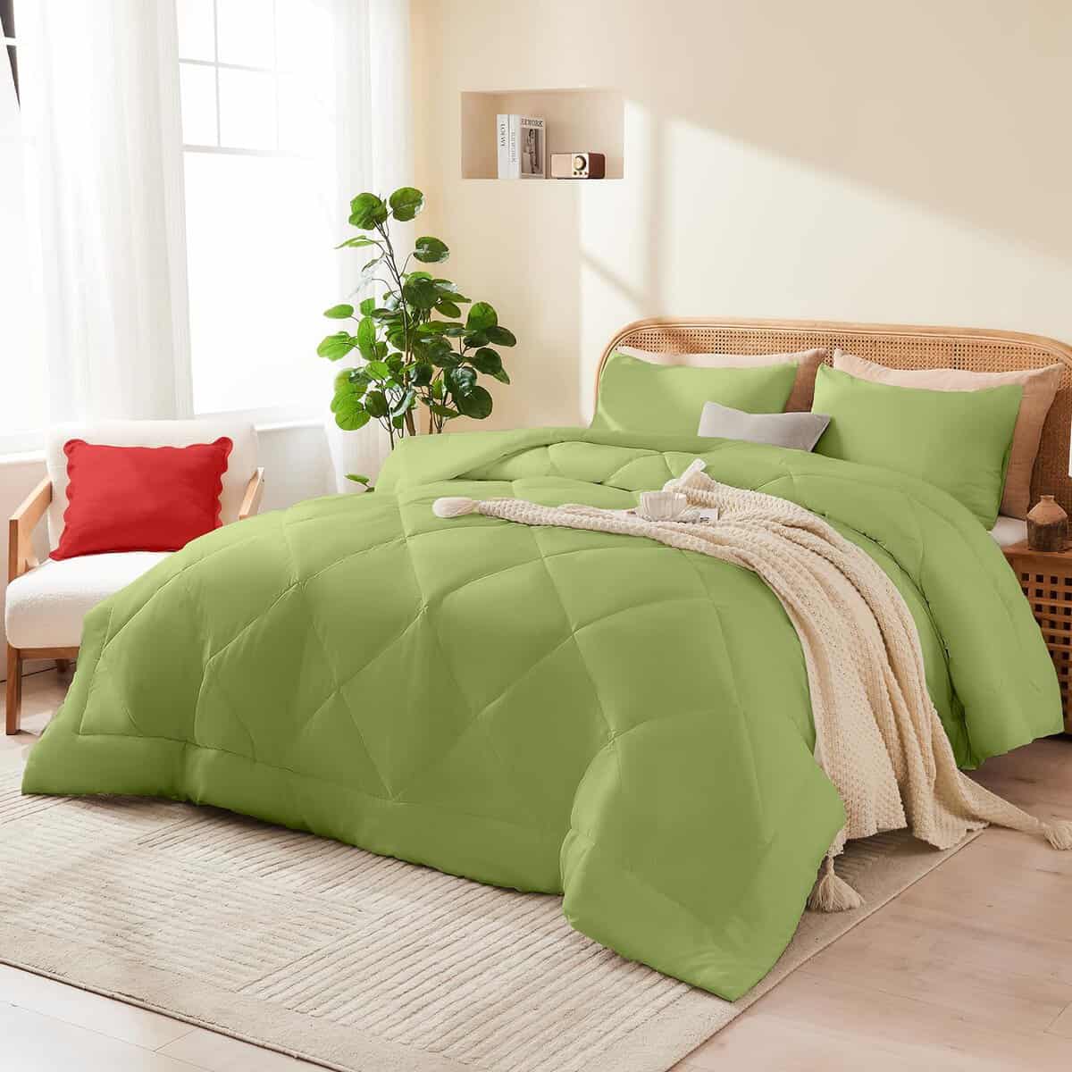 Juego de Edredón Queen YOOHU Verde Salvia, 3 Piezas Ligeras