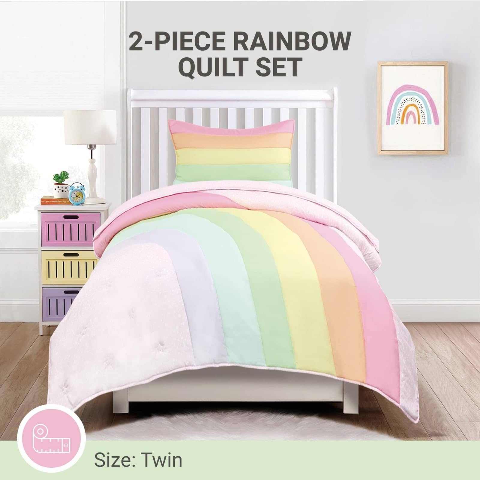 Juego de Edredón Rainbow de 2 Piezas para Niños, Twin,