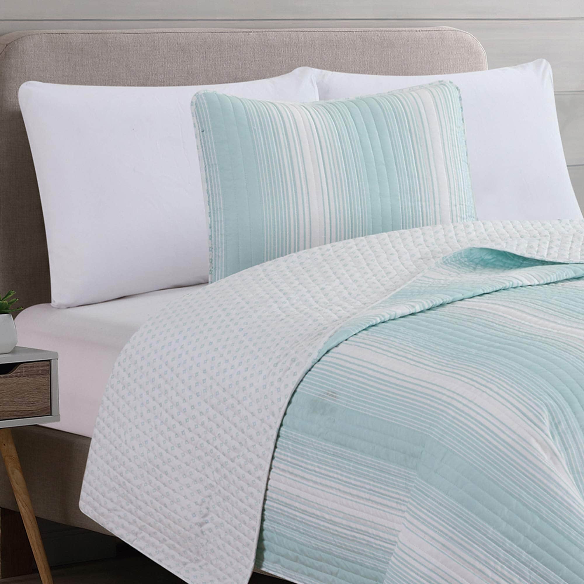 Juego de Edredón Reversible Azul para Cama Individual/Twin