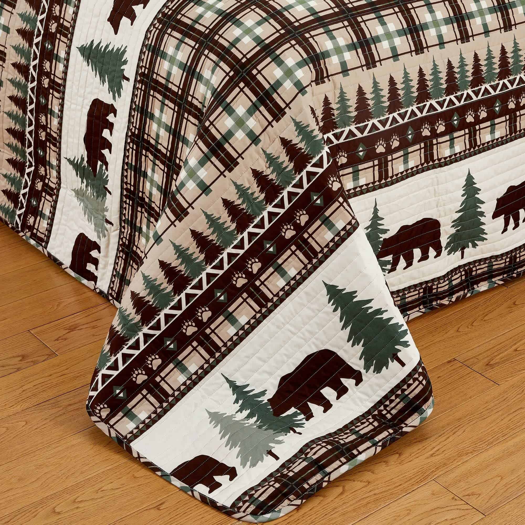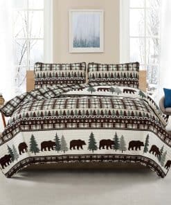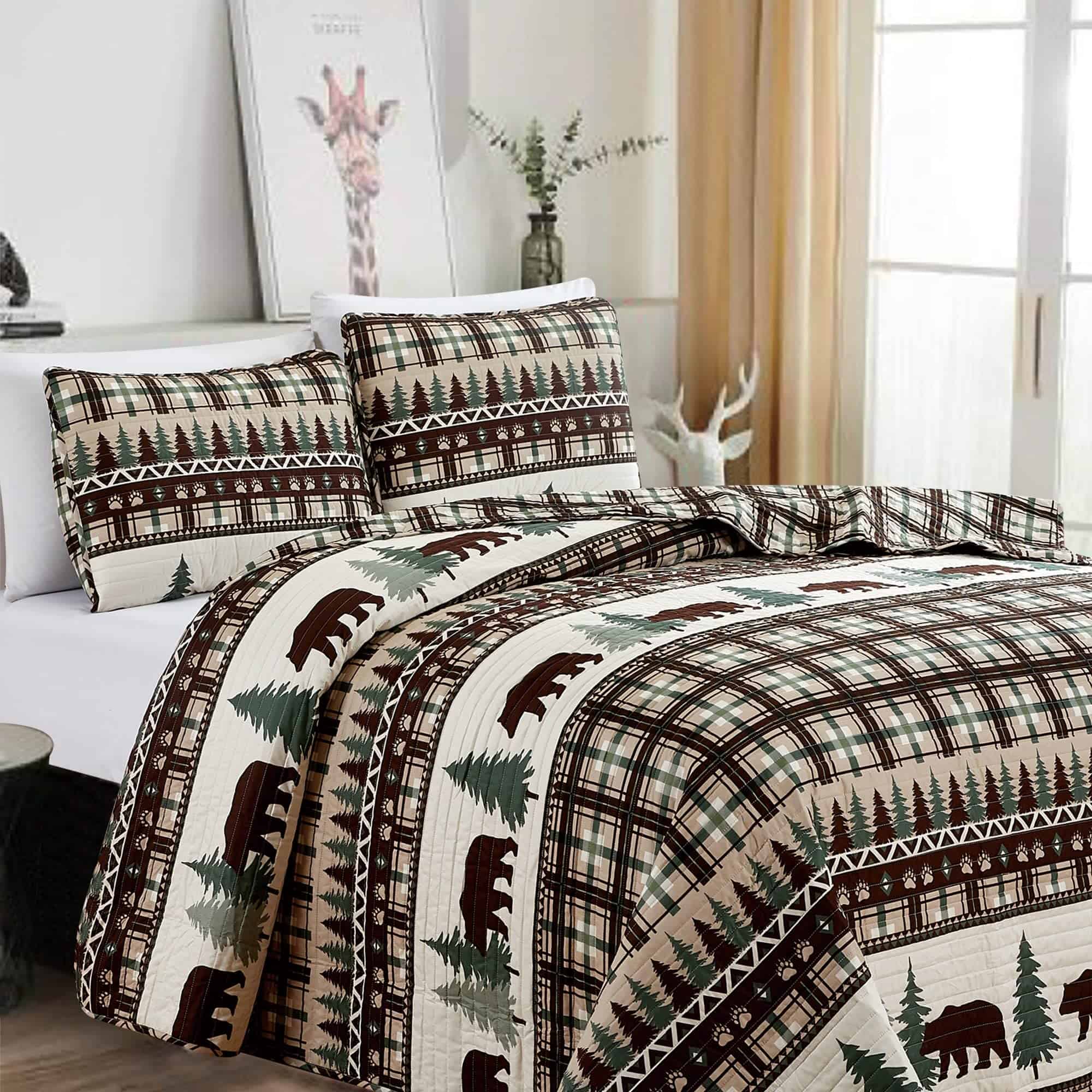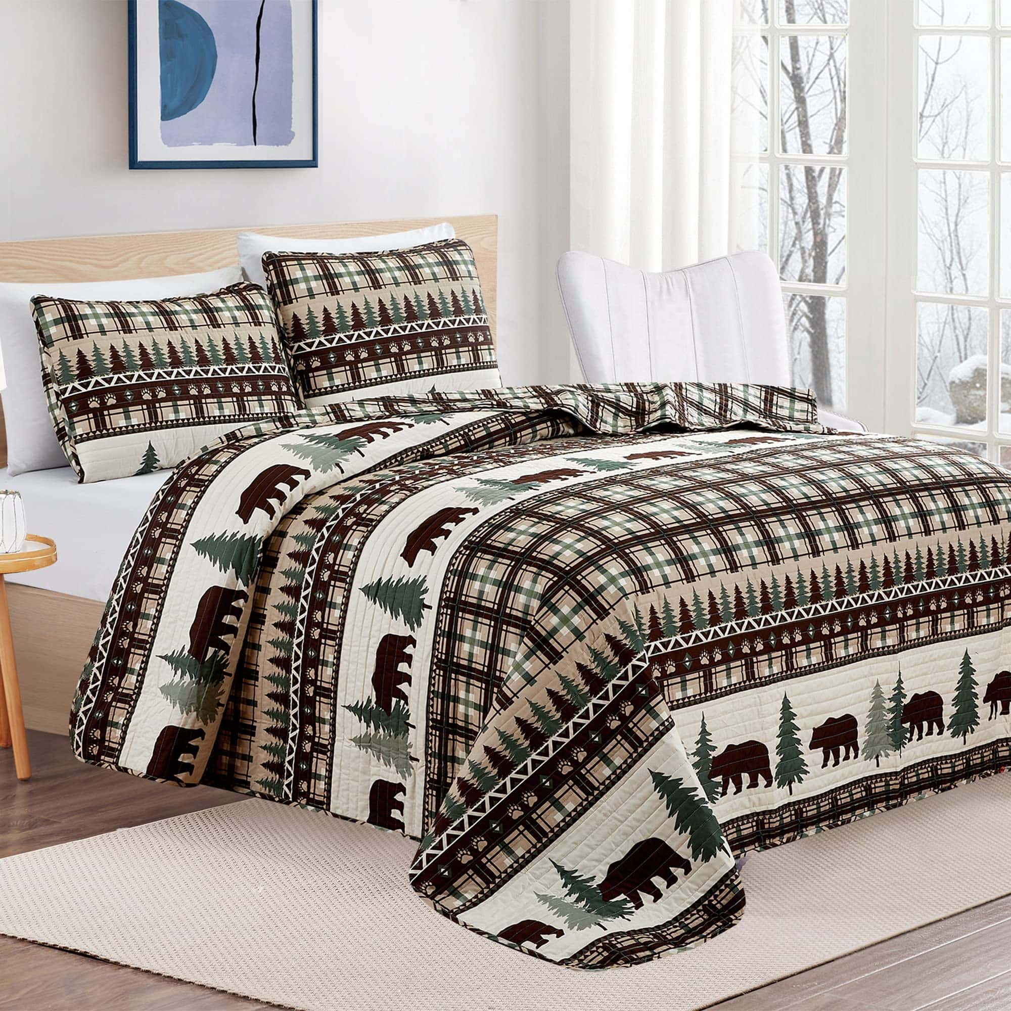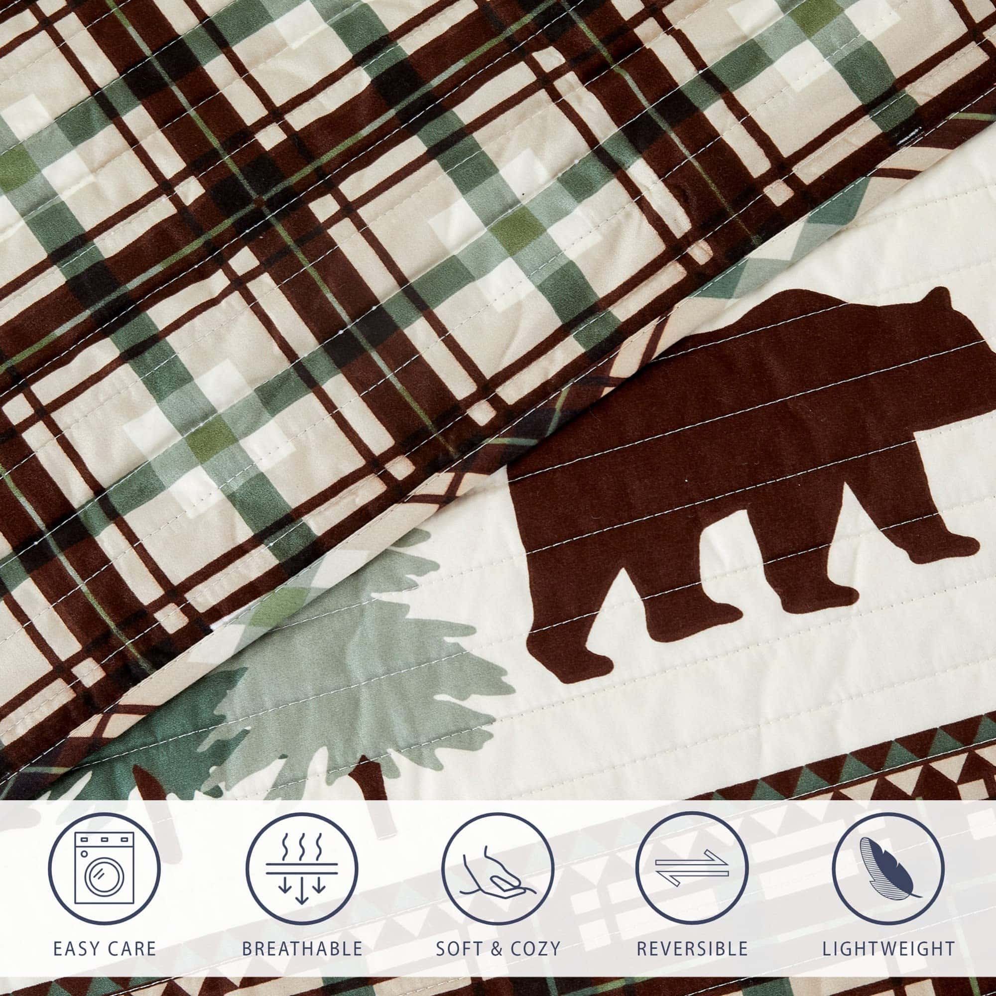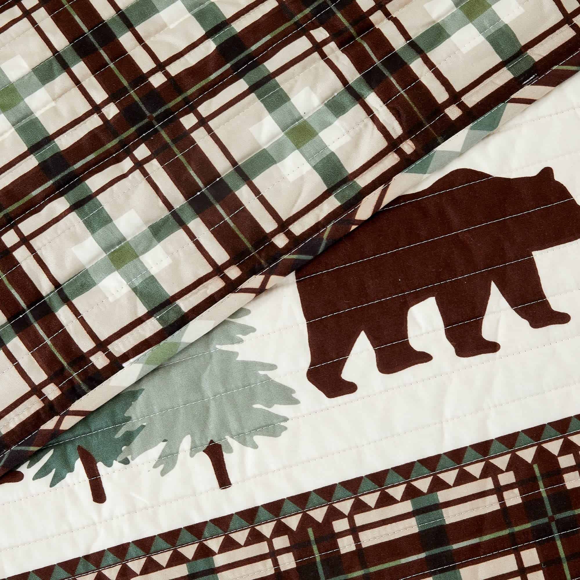 Juego de Edredón Reversible de 3 Piezas con -Chocolate/Verde