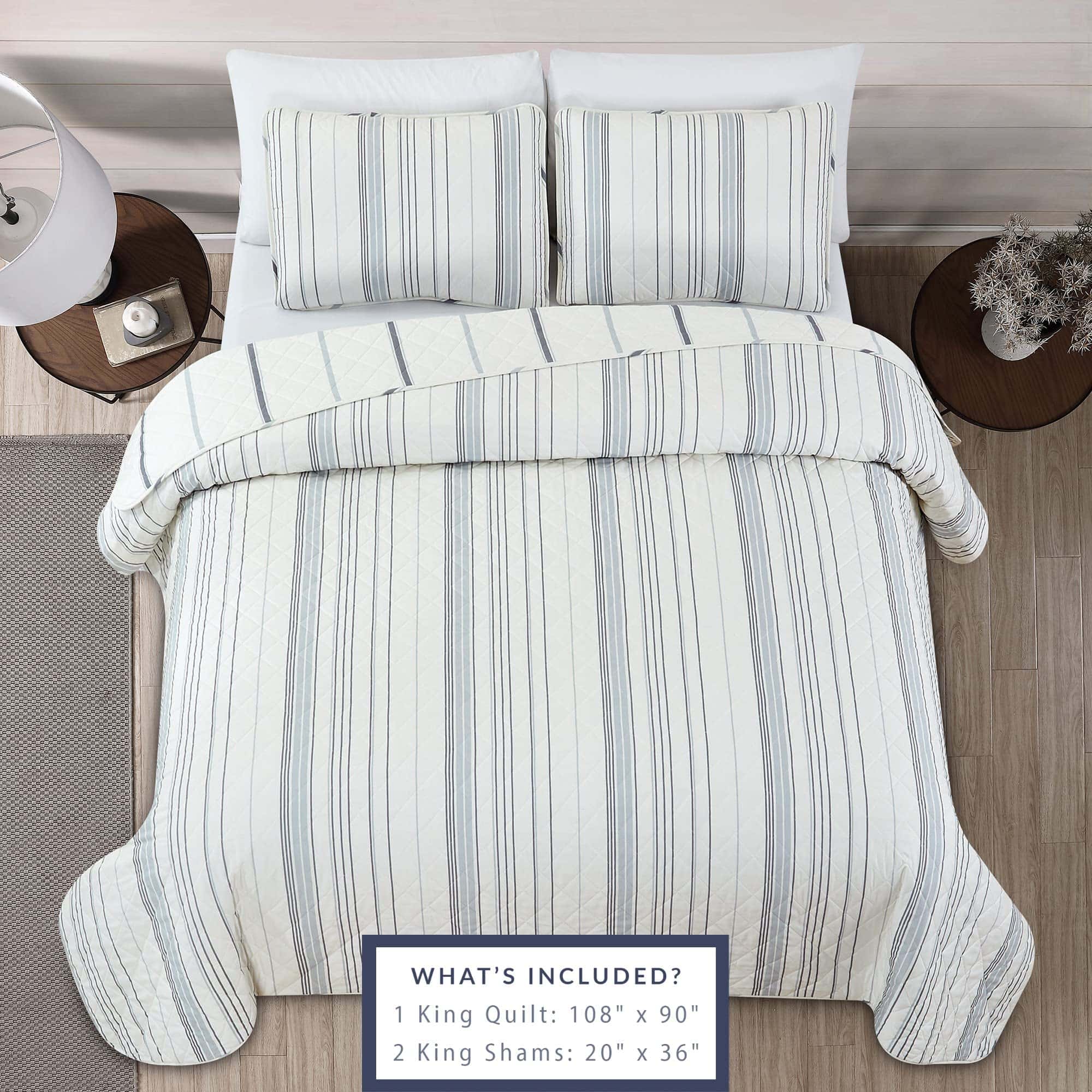 Juego de Edredón Reversible de 3 Piezas con -Ivory/Grey