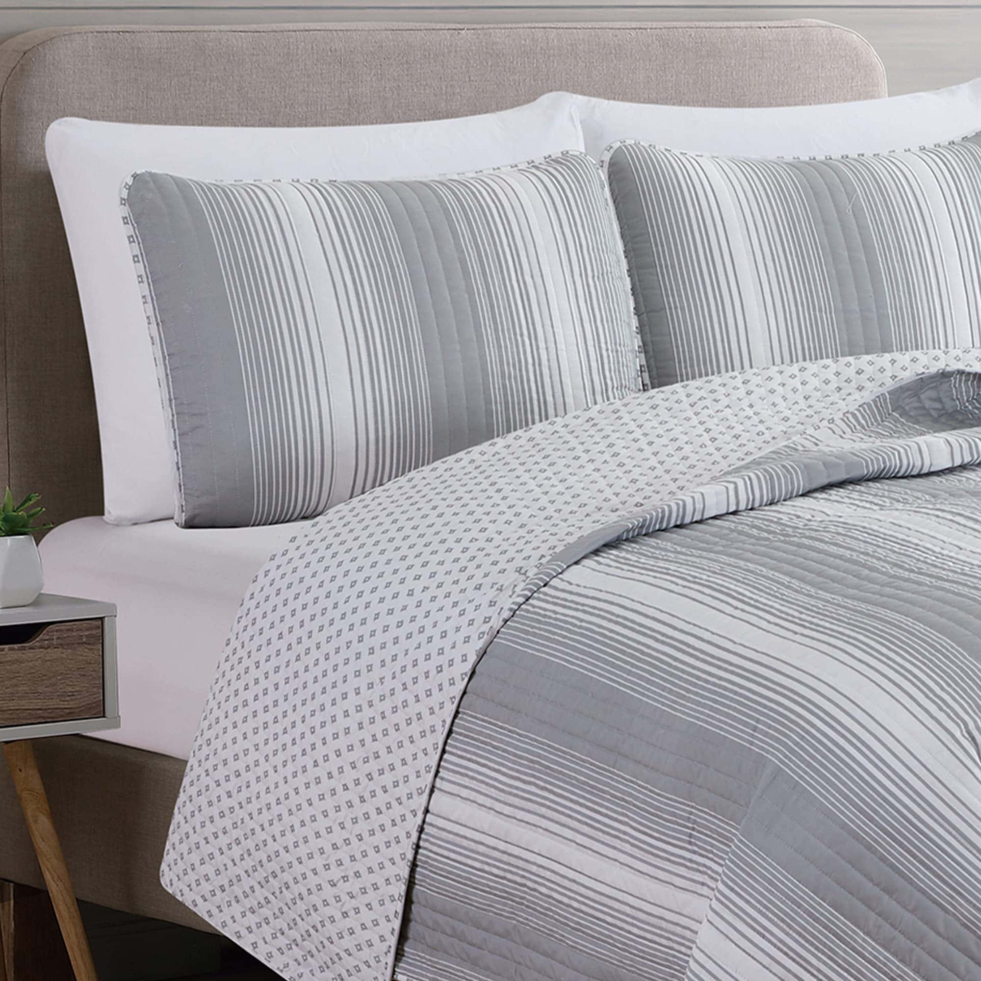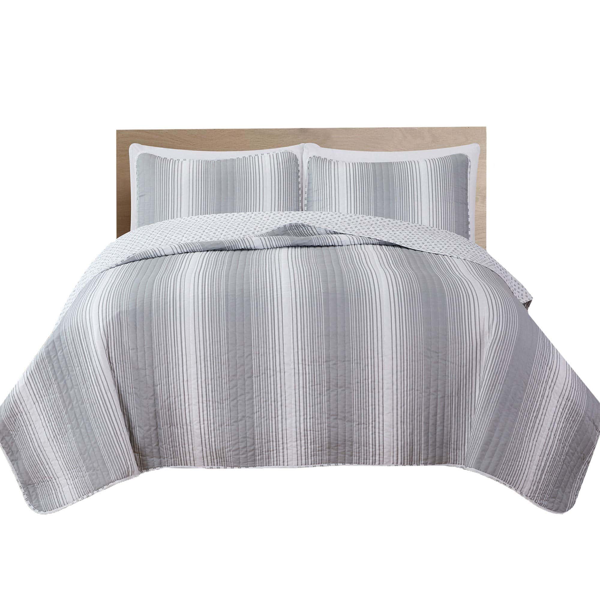 Juego de Edredón Reversible de 3 Piezas Gris para Cama King