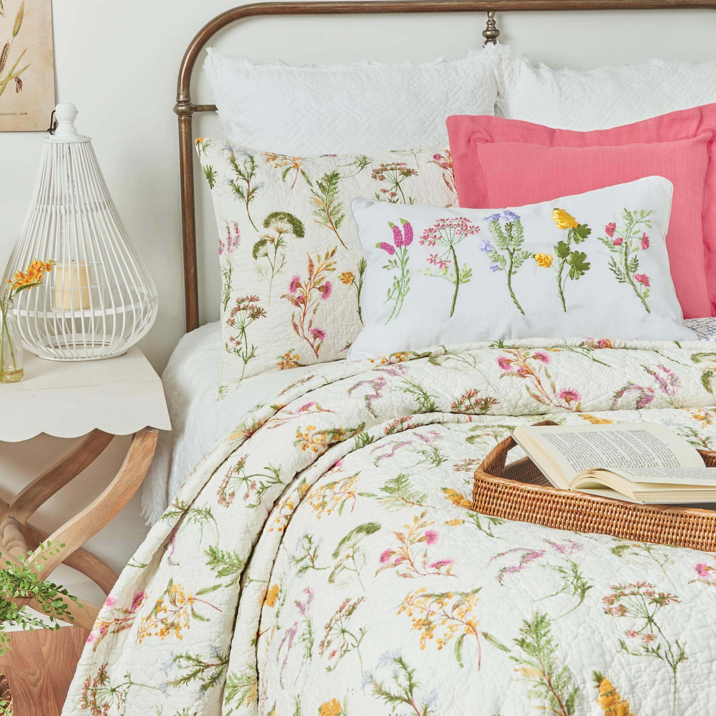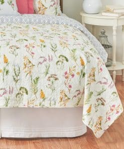 Wake up to the warm summer sun, cozy up against the autumn chill, or dream of your spring garden with Genevieve. A large-scale floral botanical with vibrant yellow, pink, and blue blooms on a warm cream-white background easily brightens any bedroom. Reverse Genevieve to a versatile blue and white design that effortlessly combines traditional allure and contemporary geometric flair for even more styling options. Cover is crafted of 100% cotton and provides long-lasting softness and durability. Bedspread is lightweight for comfortable all season year round use. Prewashed and Preshrunk. This 2 piece twin quilt set includes 1 quilt (64″ x 86″) and standard sham (20″ x 26″). Luxury oversized for today’s larger mattresses. Coordinating accent pillows and bed skirt are available separately. Machine washable so it is great for families with kids or pets. Use it in your bedroom, kid’s room, guest room or vacation home. or cabin. Makes a great gift for birthday, anniversary or wedding. Coordinating euro shams, accent pillows and bed skirt are available separately.