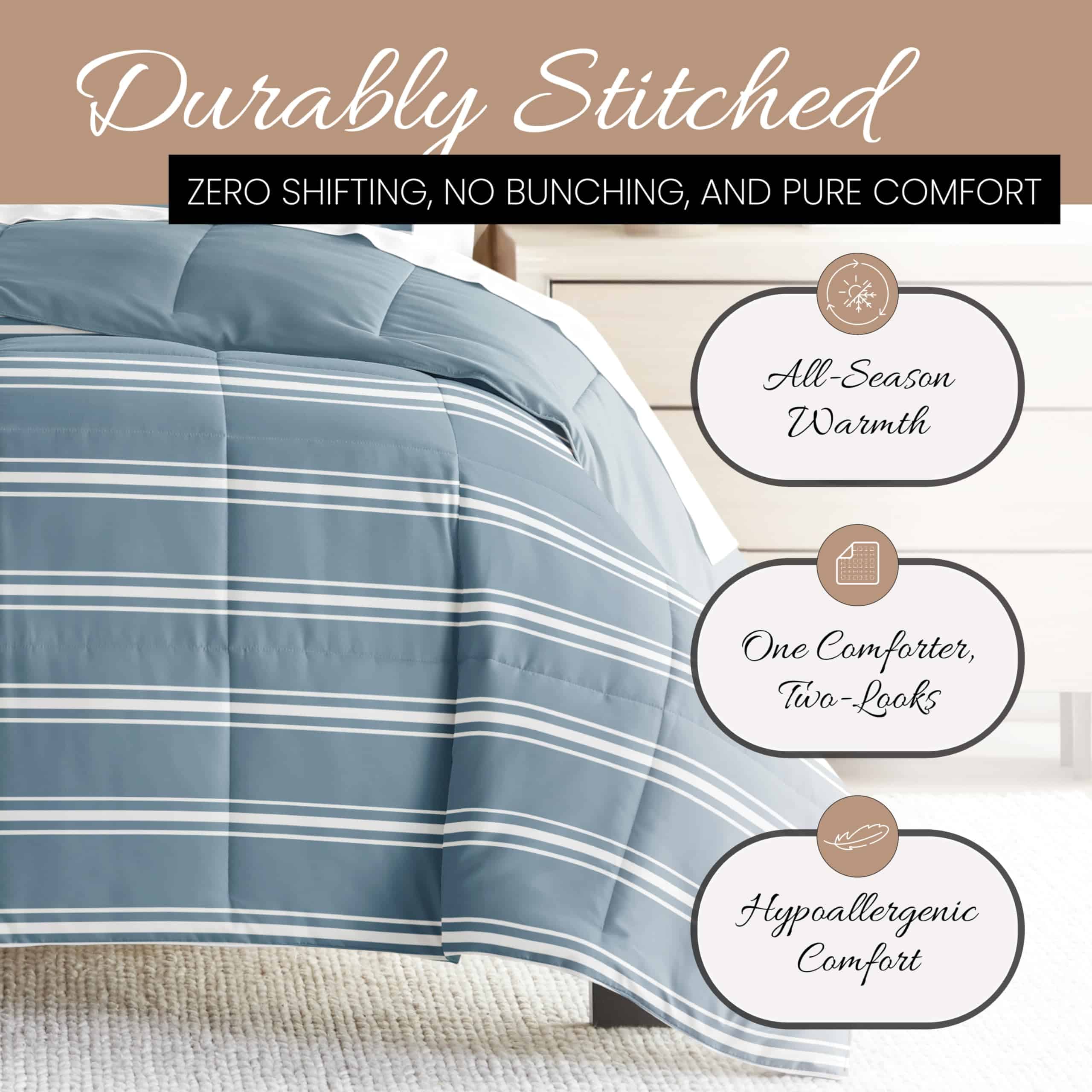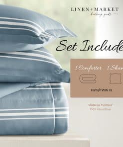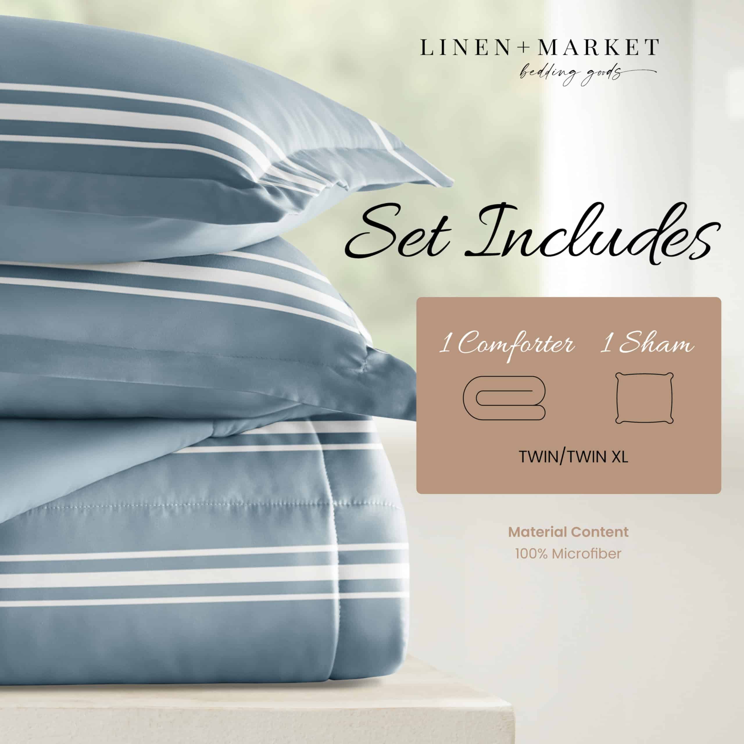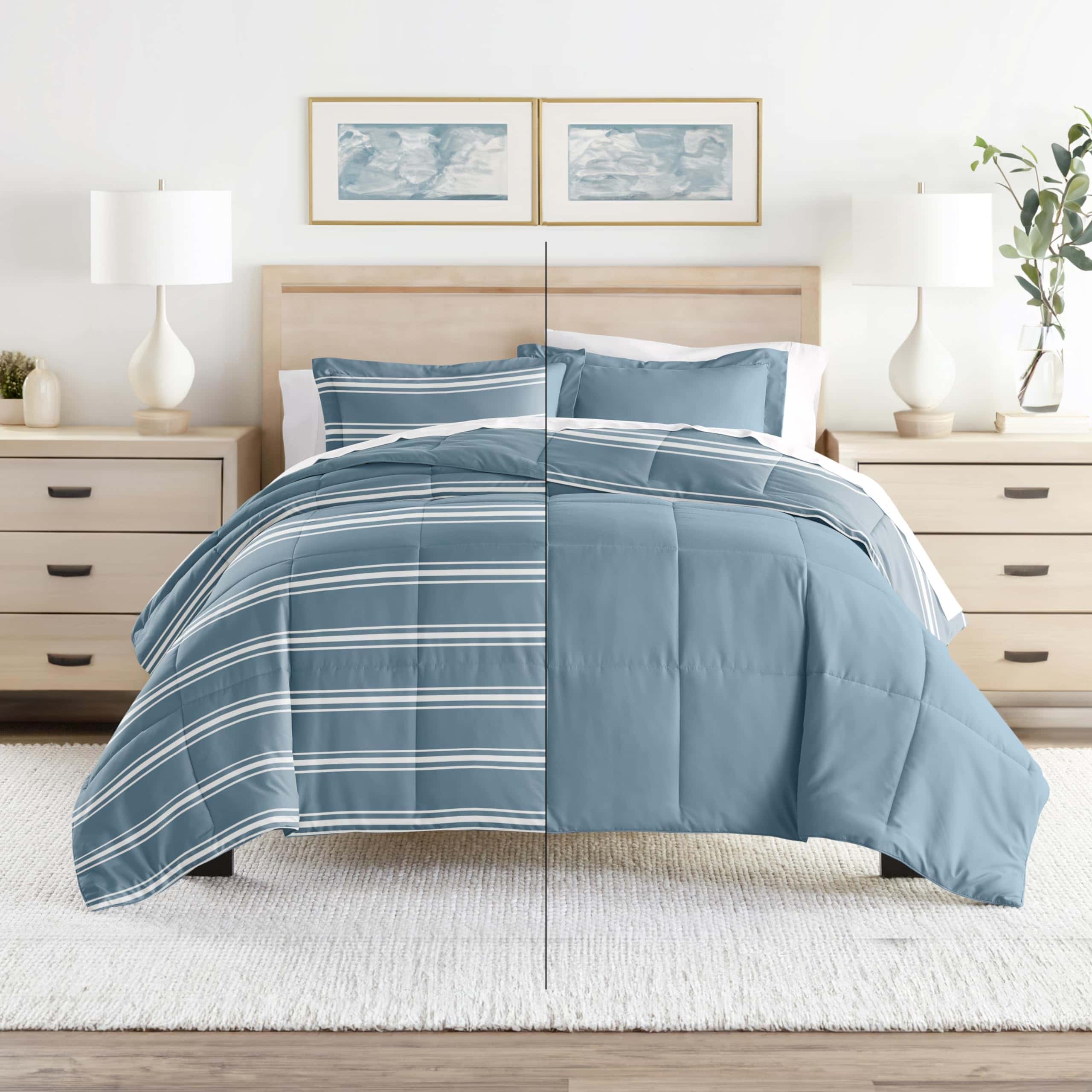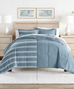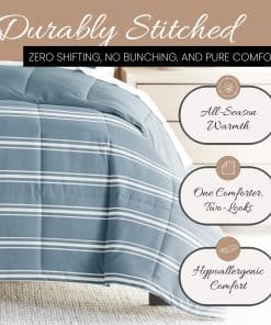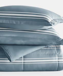 Juego de Edredón Reversible para Cama -Rayas Suaves Azul Cla