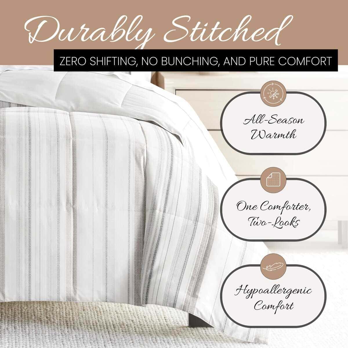 Juego de Edredón Reversible Tamaño Twin de -Rayas Verticales