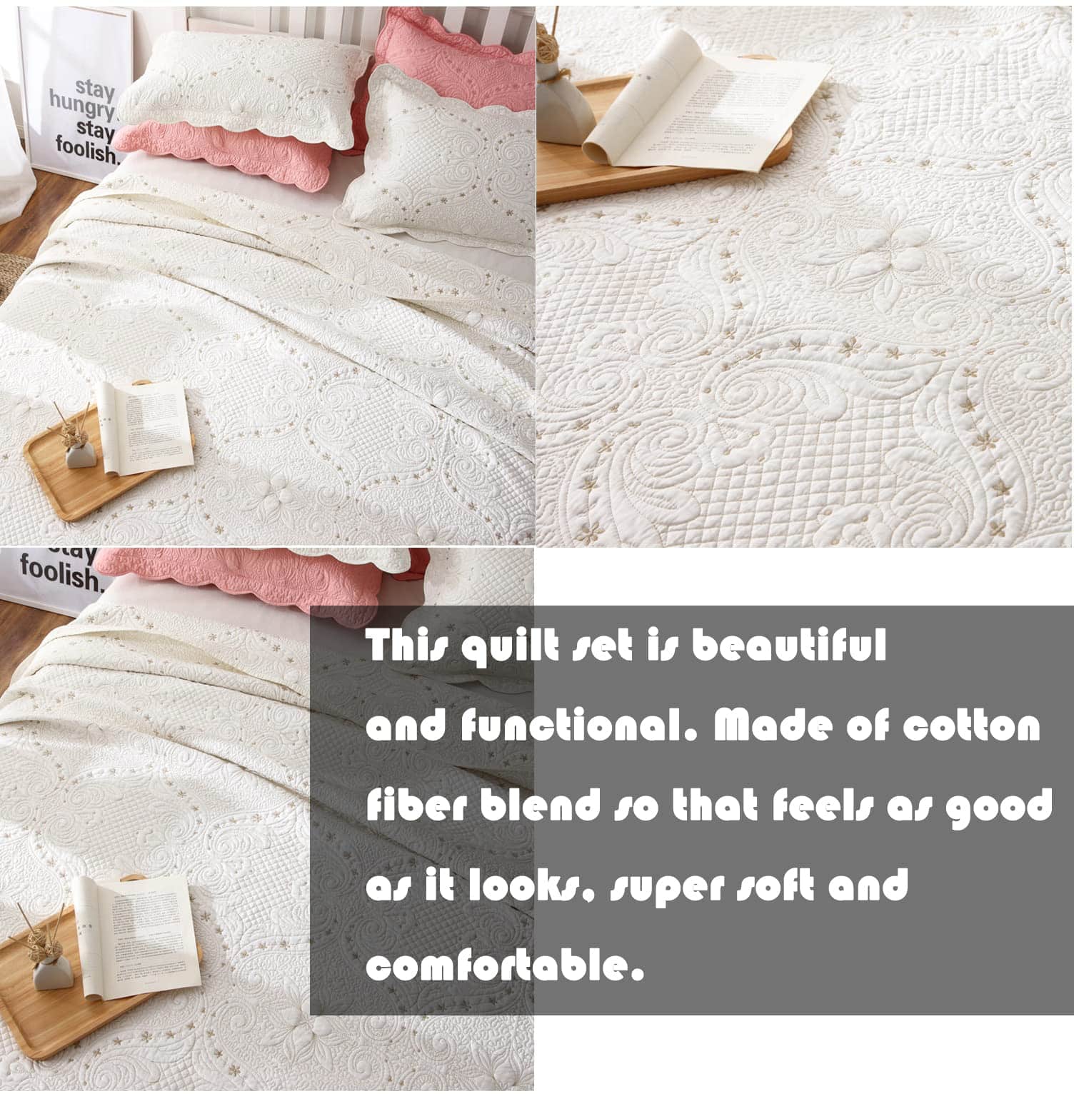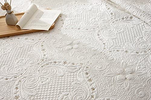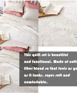 Este juego de edredón romántico en color blanco crema de Brandream es la elección perfecta para darle a tu dormitorio un aspecto lujoso y elegante. El set incluye un edredón/colcha de tamaño Queen de 94×88 pulgadas y 2 fundas de almohada de 20×27 pulgadas. Fabricado con material de alta calidad, como poliéster de alta densidad que es suave como el algodón y de calidad duradera. El diseño romántico y chic de este set lo hace ideal para combinar con cualquier tipo de decoración en tu hogar. Puedes lavarlo a máquina en frío y secarlo rápidamente en secadora en ciclo suave bajo. Este juego de edredón es perfecto para las estaciones de primavera y verano, y también se puede utilizar como colcha o sábana durante el invierno. Además, también puede ser utilizado como cubierta de sofá durante todo el año, manteniéndote abrigado y limpio al mismo tiempo. ¡No busques más, este juego de edredón lo tiene todo!
