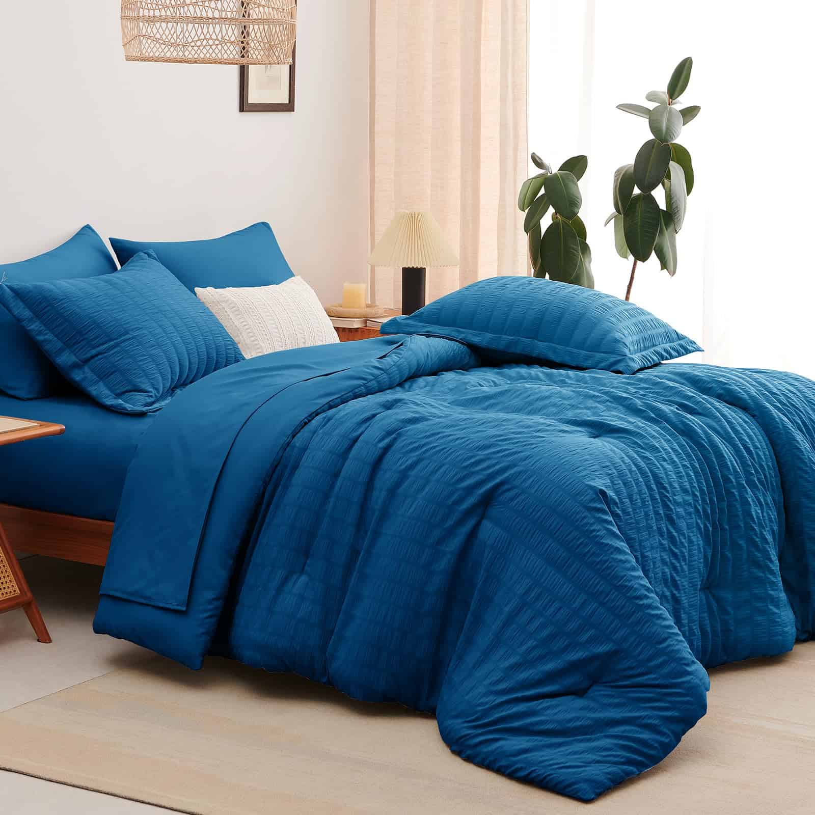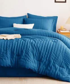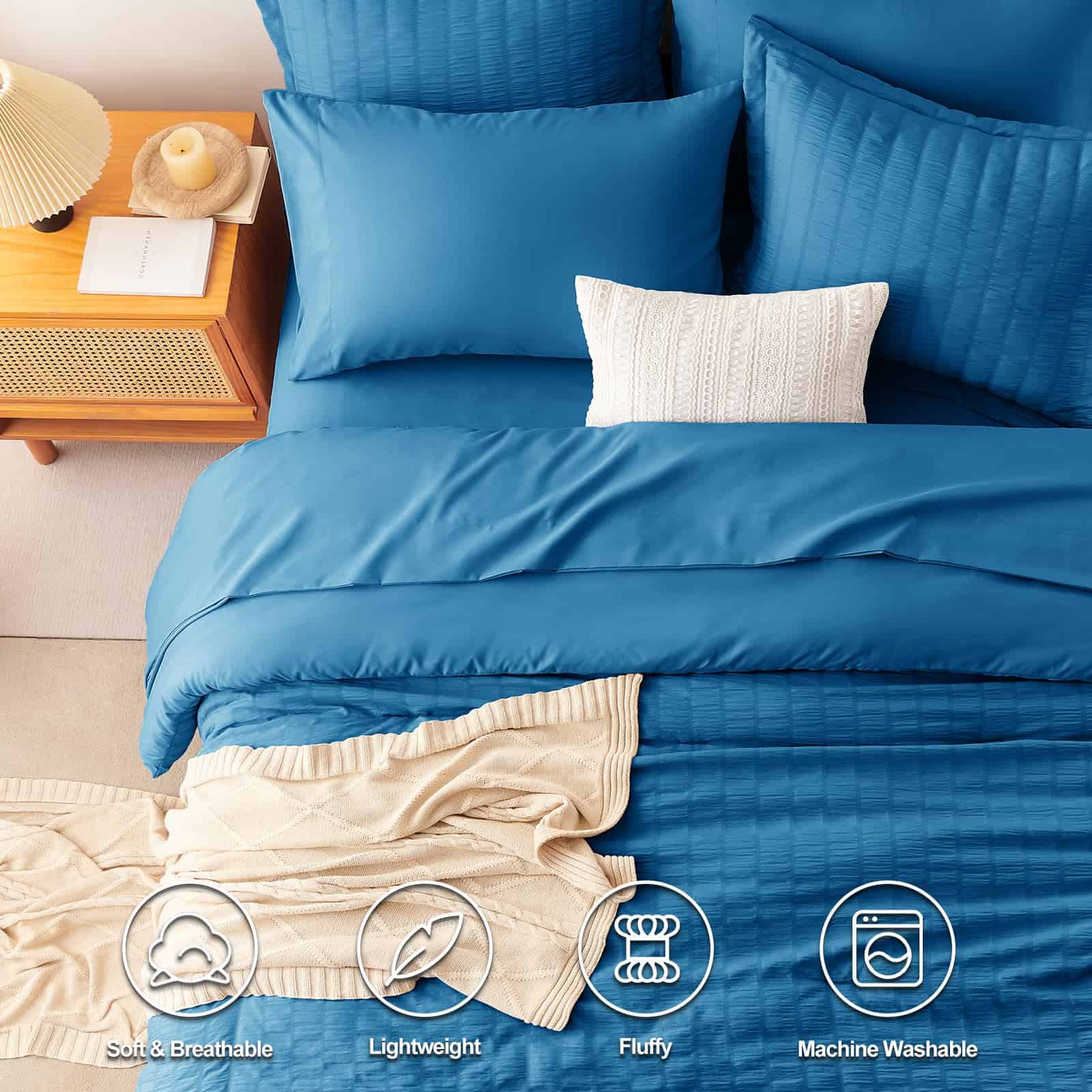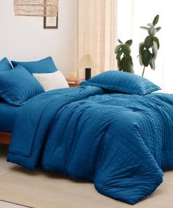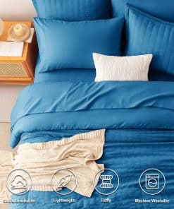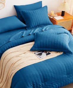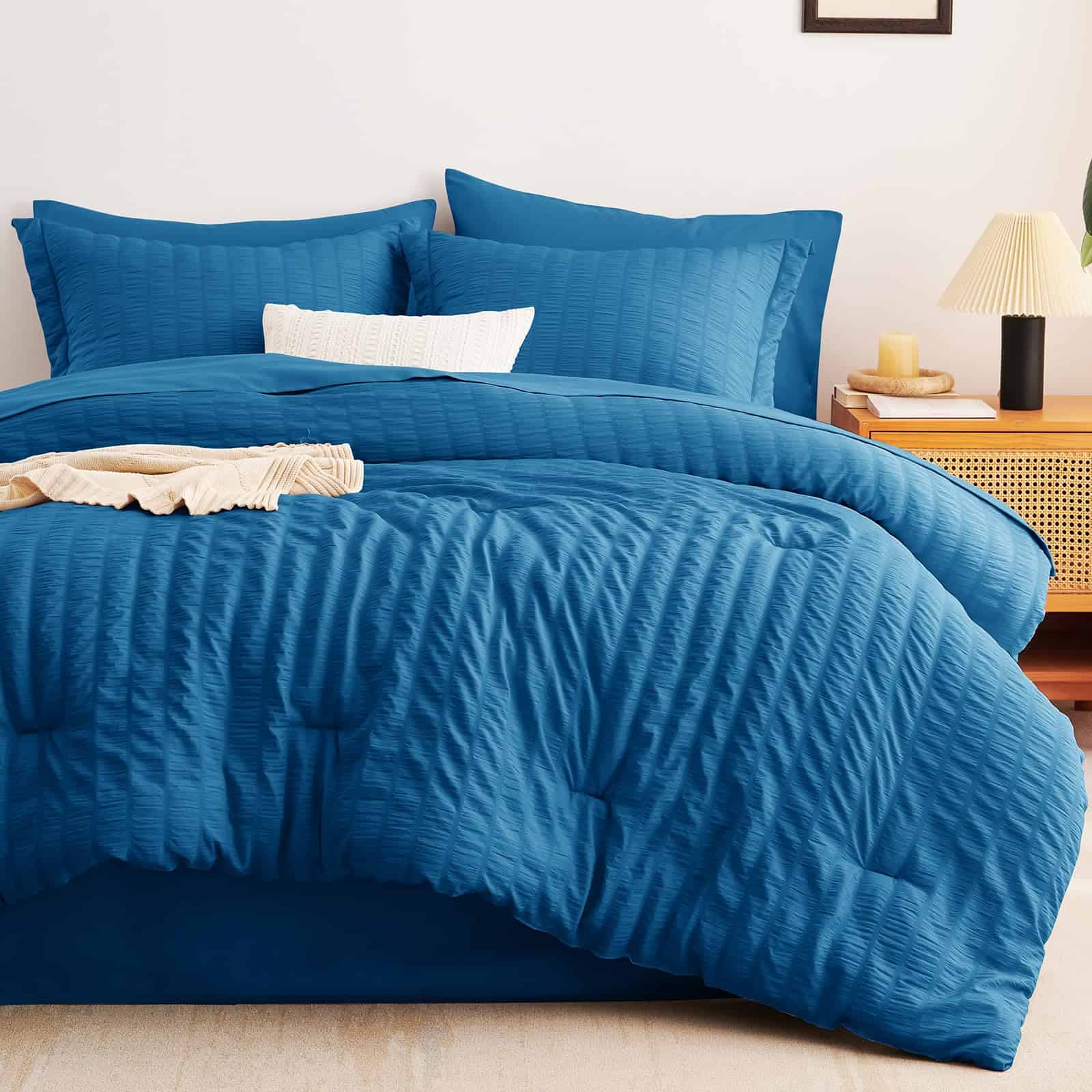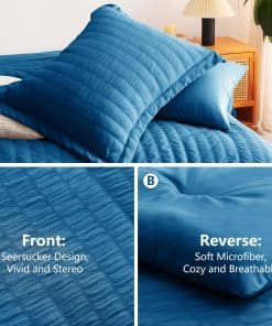 Juego de Edredón Seersucker CozyLux Queen con Sábanas Teal
