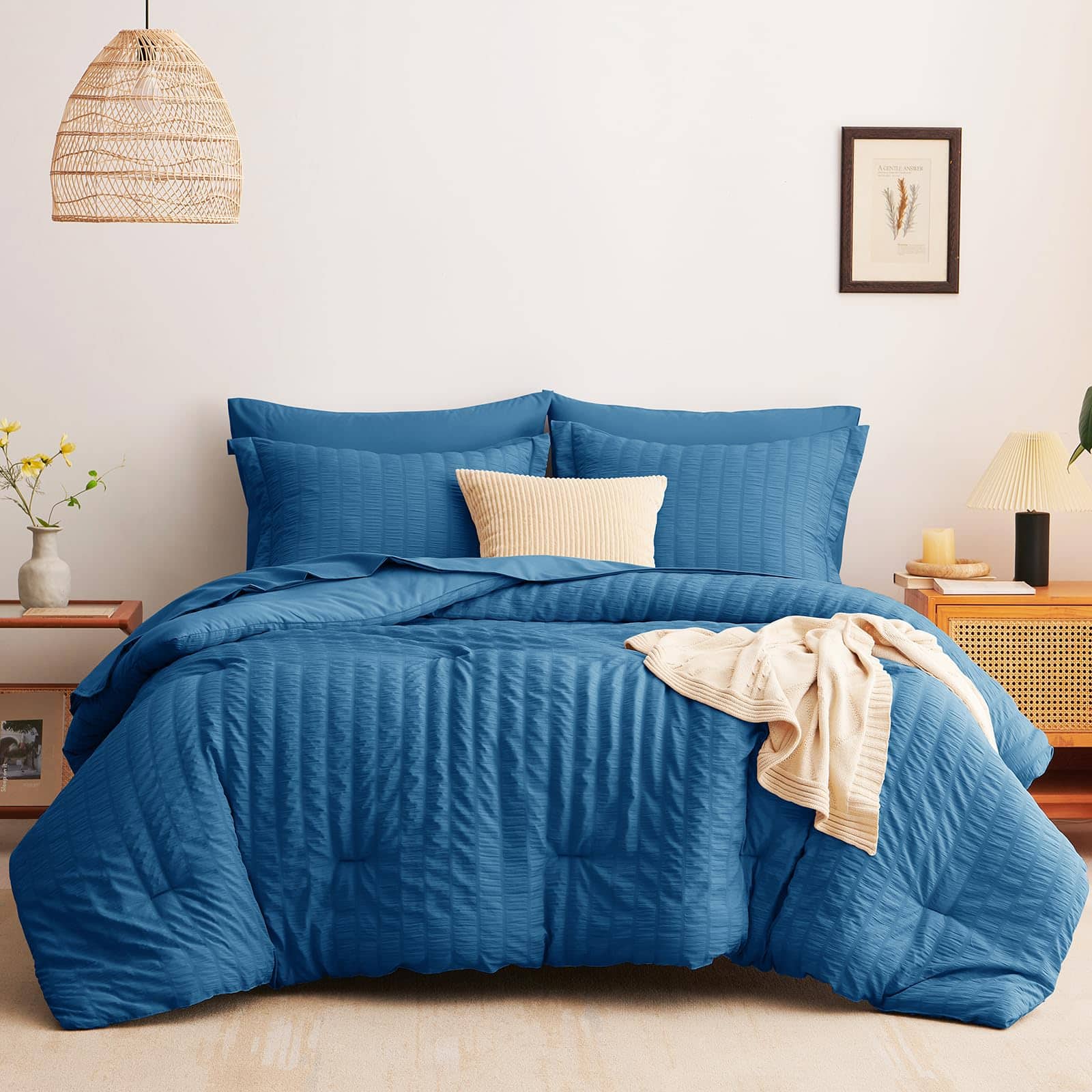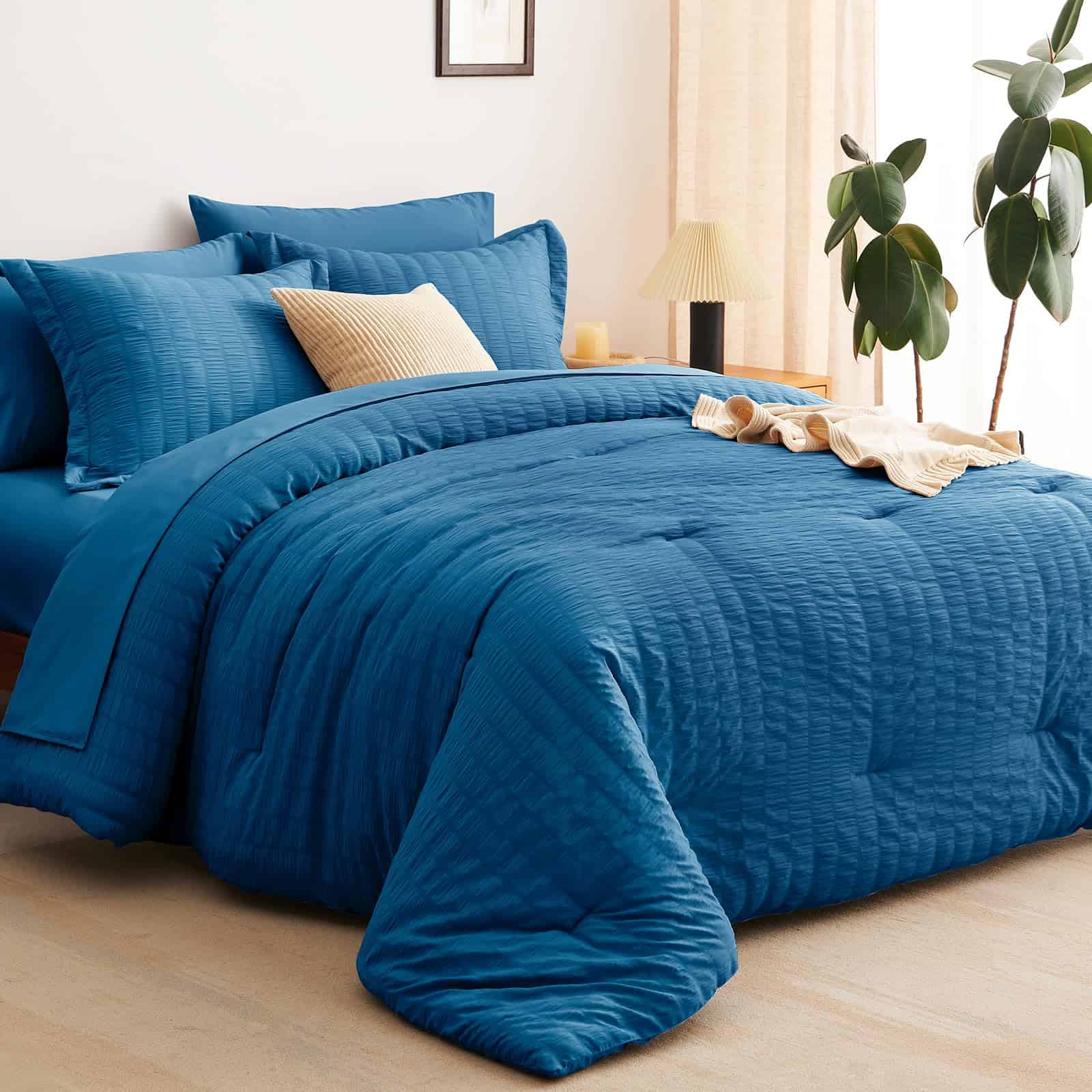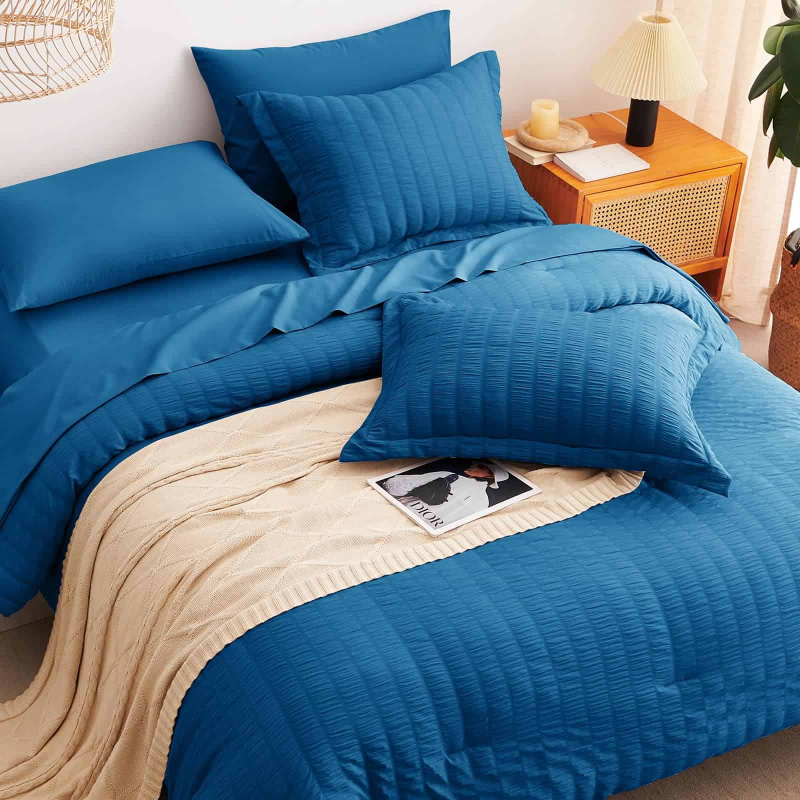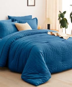 Juego de Edredón Seersucker CozyLux Queen con Sábanas Teal