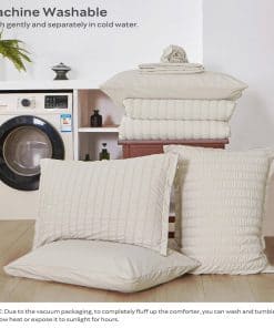 1. El juego completo está elaborado con 100% microfibra, garantizando un calor excepcional y una sensación acogedora. El edredón cuenta con un aspecto único ‘arrugado’ en el frente, contrastando con una parte trasera lisa. Con costuras sólidas en todo momento, el edredón tiene una durabilidad mejorada, previniendo eficazmente el amontonamiento. Esto resulta en un edredón ligero que proporciona comodidad durante todo el año.