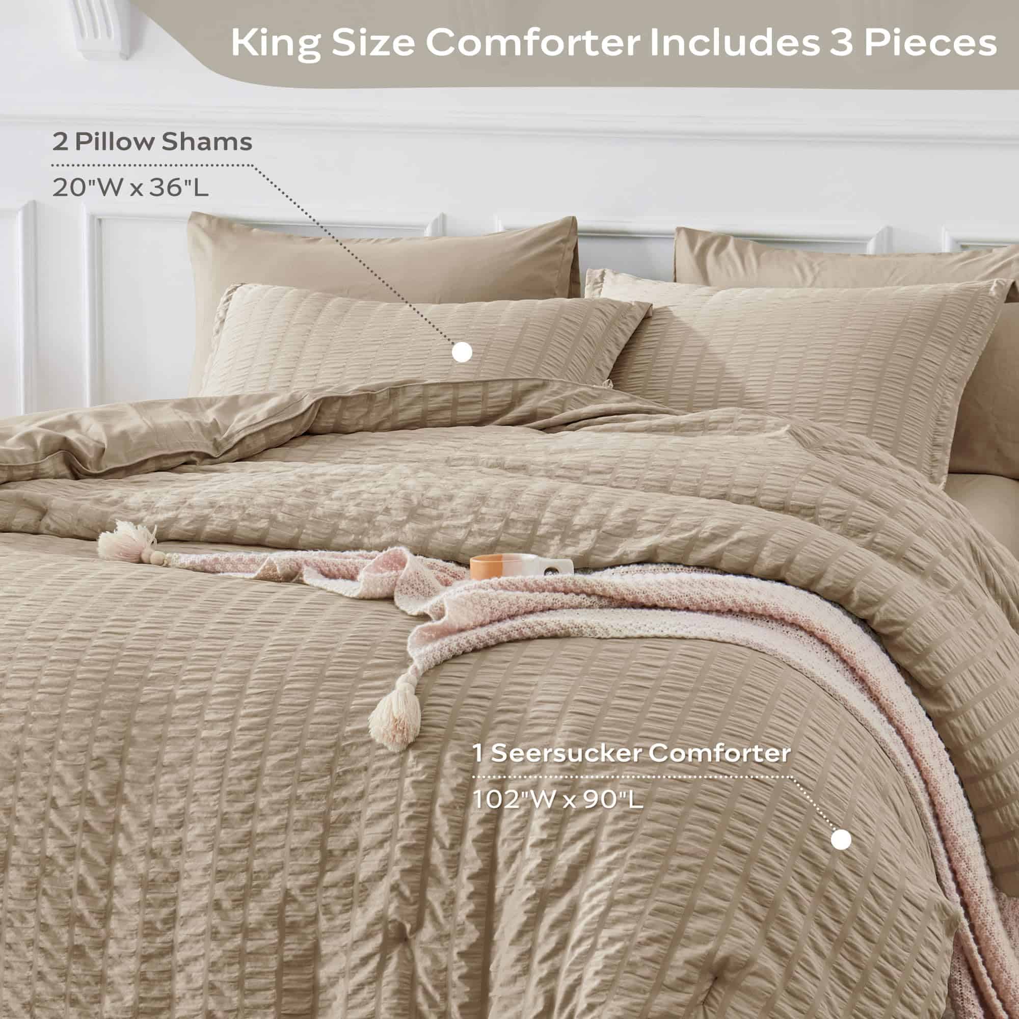 Juego de Edredón Seersucker Jellymoni Tamaño King, 3 Piezas