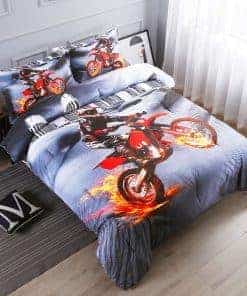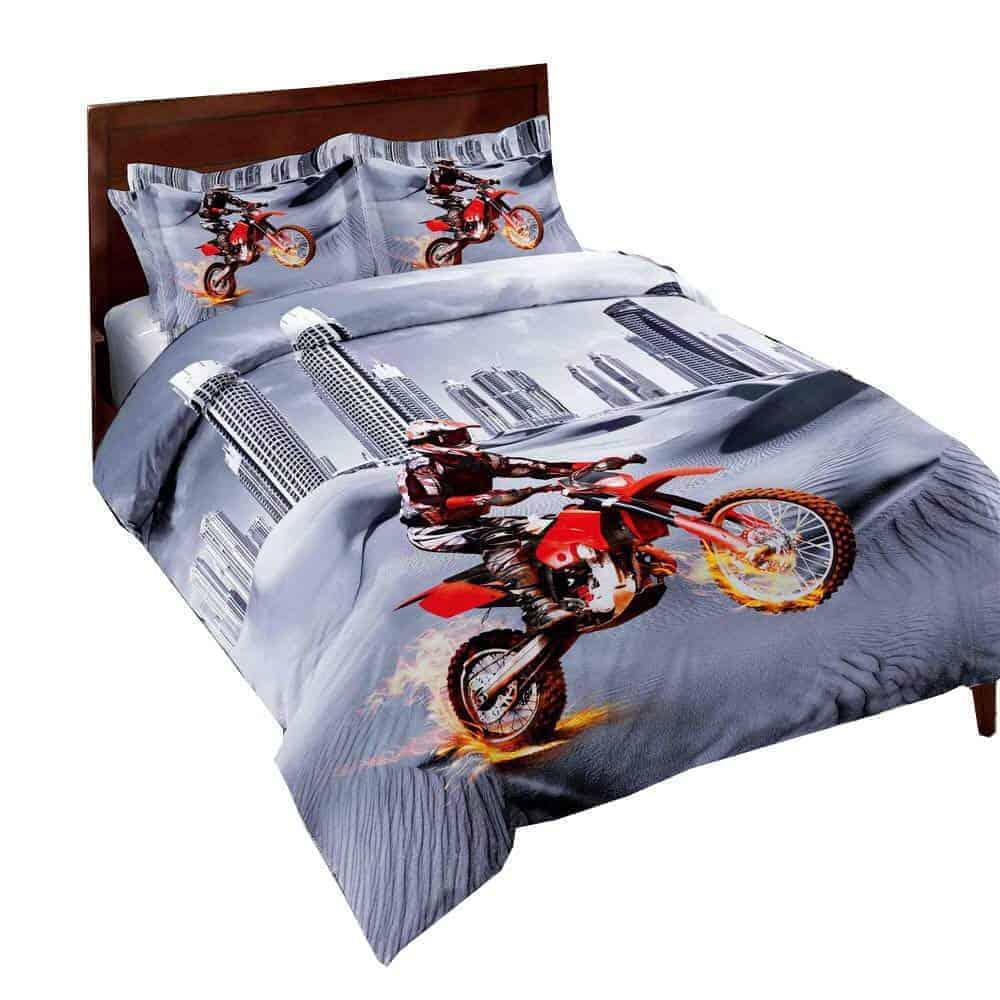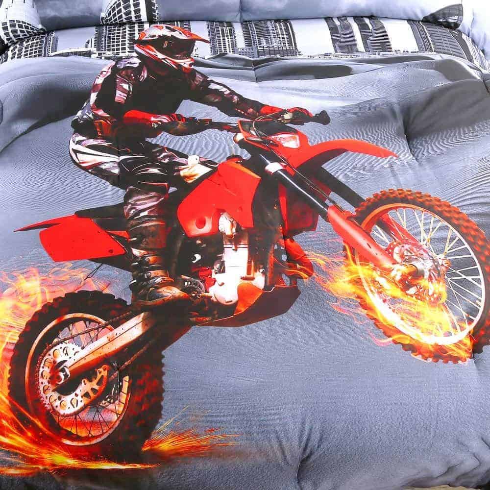 Este juego de edredón SHOMPE para cama Queen Size es perfecto para los amantes de las carreras de motocross y de los deportes extremos. El set incluye un edredón de 90×90 pulgadas y 2 fundas de almohada de 20×30 pulgadas, todo con un diseño impreso de corredores de motocicletas de carreras de motocross. El tejido exterior está hecho de microfibra suave y lisa, mientras que el relleno hipoalergénico ofrece el calor del plumón sin los alérgenos, siendo adecuado para todas las estaciones. Este juego de edredón es fácil de cuidar, se puede lavar a máquina en frío y secar en secadora a baja temperatura o secar de forma natural, sin necesidad de planchado ni de usar lejía. Además, ofrecemos una garantía del 100% de satisfacción con 30 días de prueba, por lo que si no te encanta completamente, puedes devolverlo para un reembolso. Si tienes alguna pregunta, no dudes en contactarnos por correo electrónico.