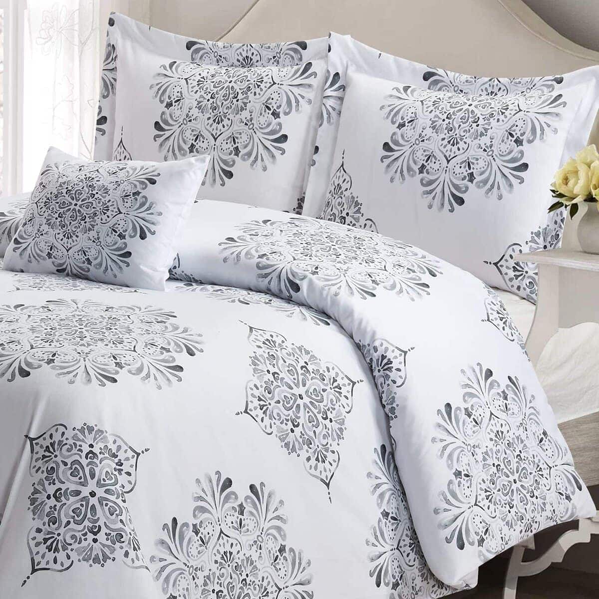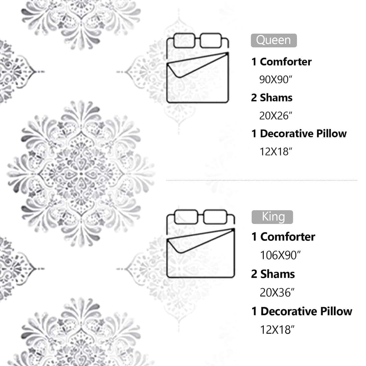 Este juego de edredón para cama queen Size de Style Quarters es perfecto para todas las estaciones. El edredón de 90×90 pulgadas es suave al tacto y el diseño geométrico boho le dará un toque moderno a tu habitación. Incluye dos fundas de almohada a juego y un cojín decorativo para completar el look. Agrega elegancia y comodidad a tu dormitorio con este hermoso juego de edredón blanco.