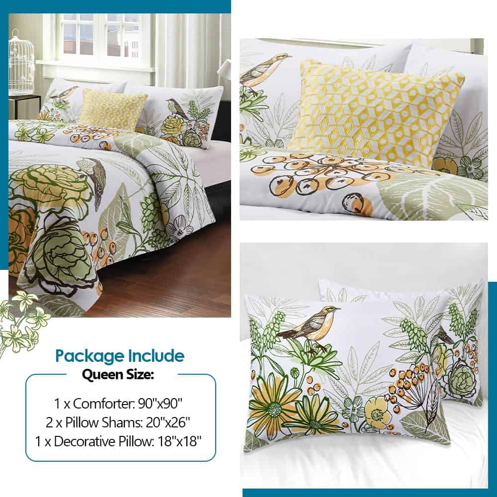 Disfruta de un mundo de elegancia refinada mientras delicadas flores bailan armoniosamente con hojas gráciles, trayendo sin problemas una vibra botánica al interior. Testifica flores vívidas meciéndose suavemente en el viento, extendiendo una cálida invitación a unirse a una fiesta de baile caprichosa que está lista para cautivar todos tus sentidos. De una suavidad como las nubes, este juego de edredón queen ofrece una suavidad excepcional en la piel para que puedas disfrutar de un sueño sereno. Suave y transpirable, los juegos de edredones de cama definen un refugio de acogedor confort para un descanso verdaderamente reparador. Esta ligera juego de edredón tamaño queen adopta la exclusiva técnica Micro-teñida de Style Quarters para lograr un efecto sutil y elegante, manteniéndote cálido y confortable. Estos juegos de ropa de cama son el regalo perfecto para tus seres queridos. Los juegos de cama de Style Quarters se fabrican en un entorno sostenible con certificación OEKO-TEX Standard 100, cumpliendo con los más altos criterios de prueba. Lavar a máquina en ciclo suave con agua fría, secar en línea o secar en secadora baja para una restauración como nueva. Mejor hogar, mejor salud con Style Quarters. Los juegos de edredón tamaño queen incluyen 1 edredón (90×90″) + 2 fundas de almohada (20×26″). Ofrecemos servicio al cliente las 24 horas, asistencia técnica de por vida, PRUEBA SIN RIESGO.