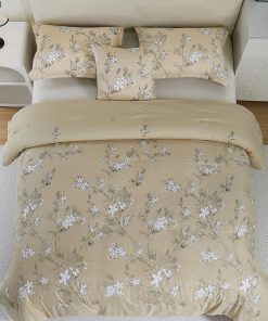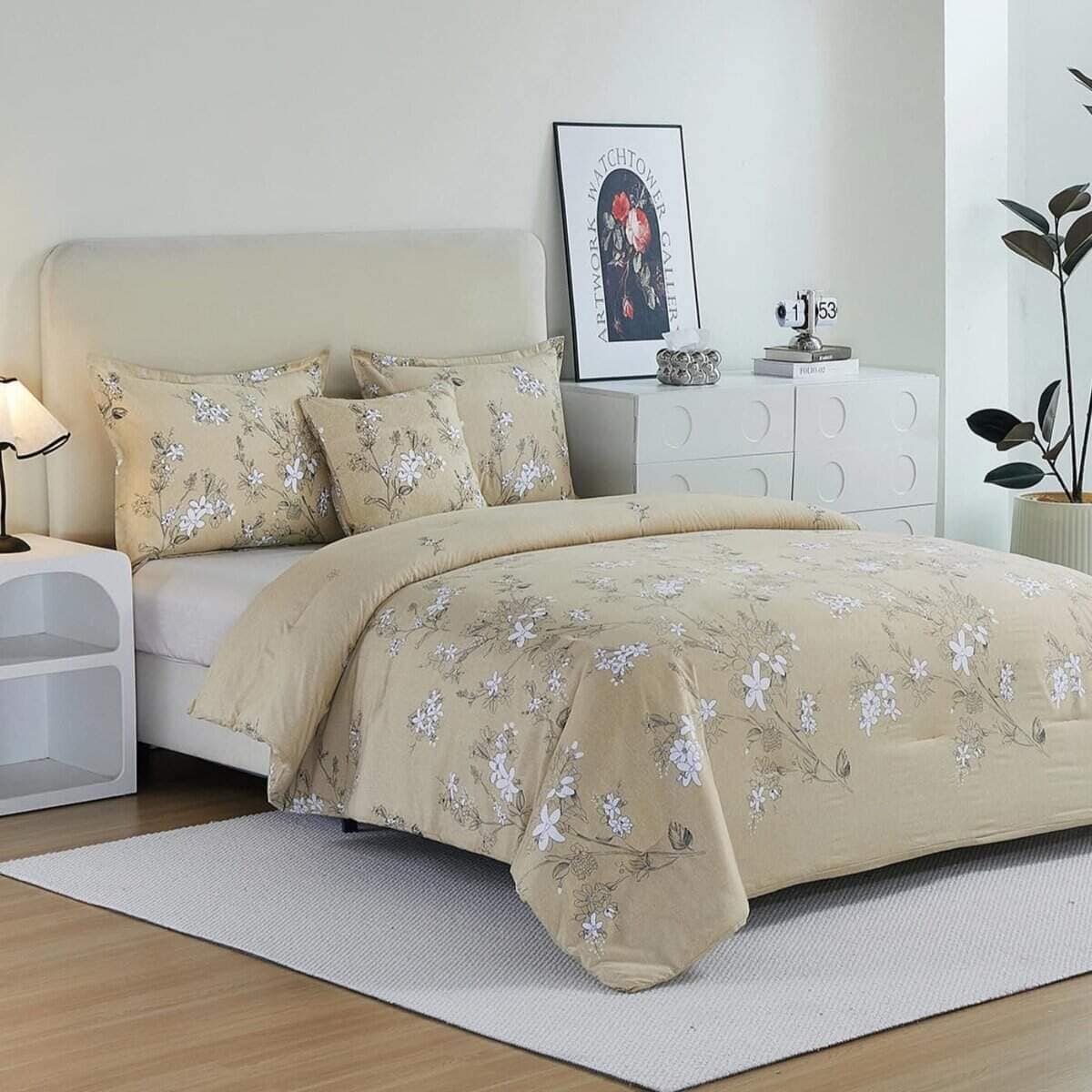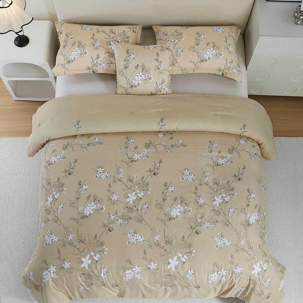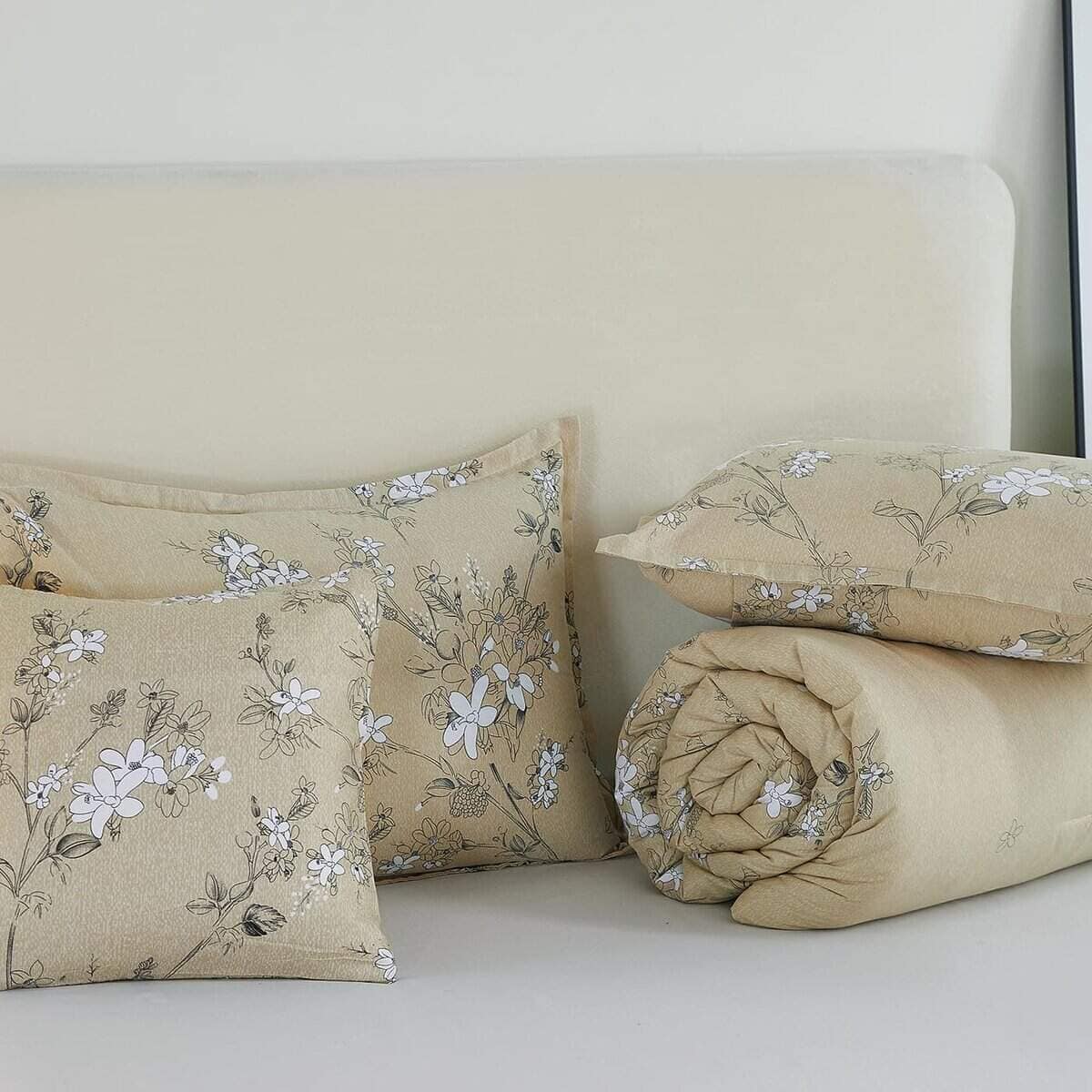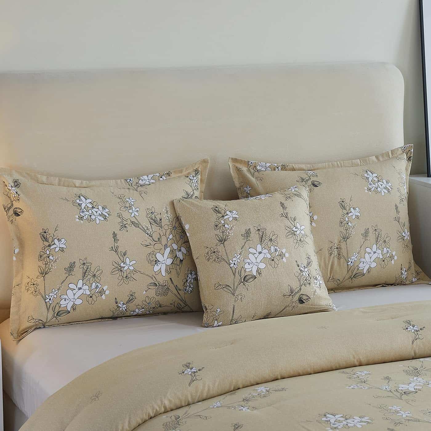 Juego de edredón reversible YEPINS, Juego de ropa de cama estampada floral botánica, 4 Piezas- 1 edredón y 2 fundas de almohada y 1 funda de almohada cuadrada decorativa