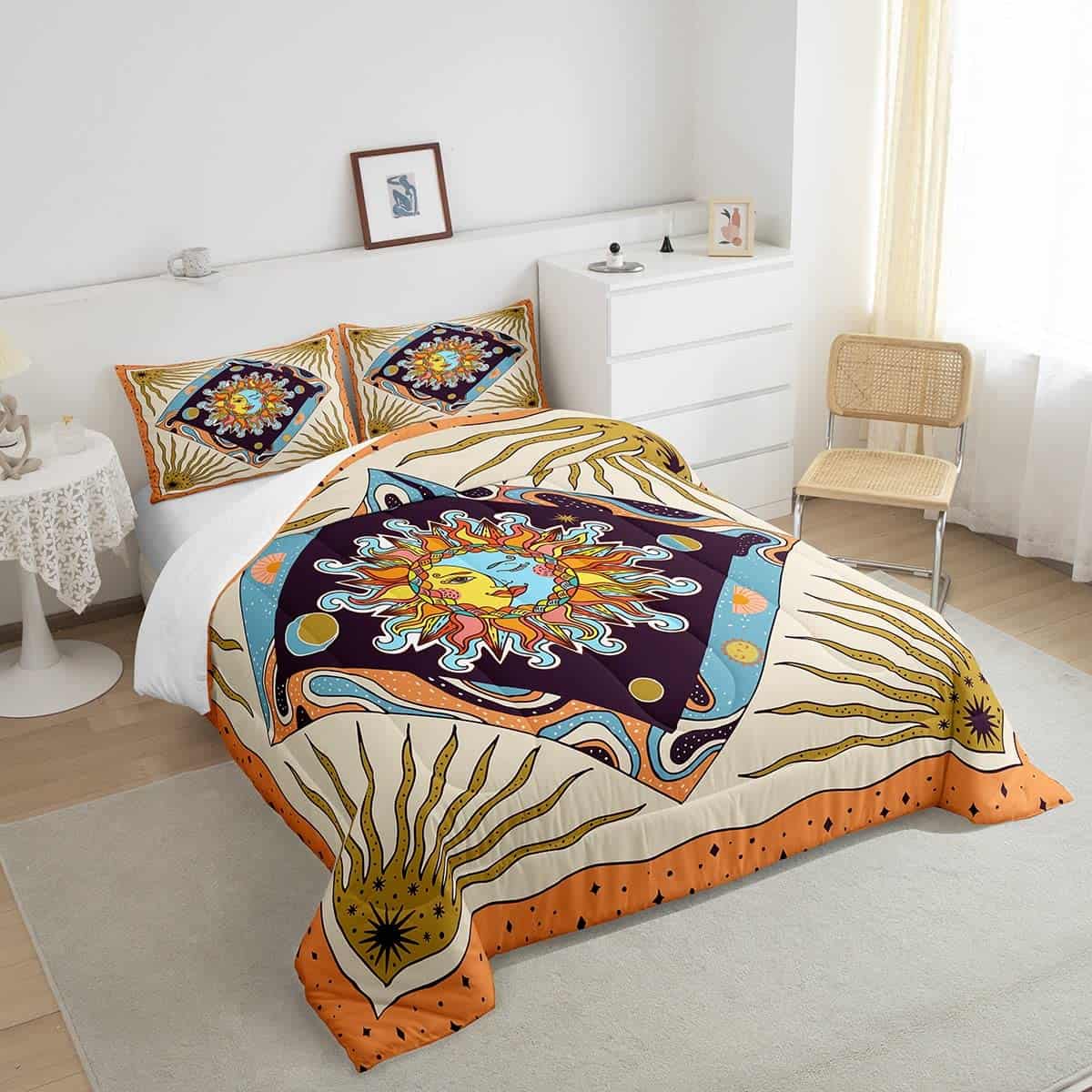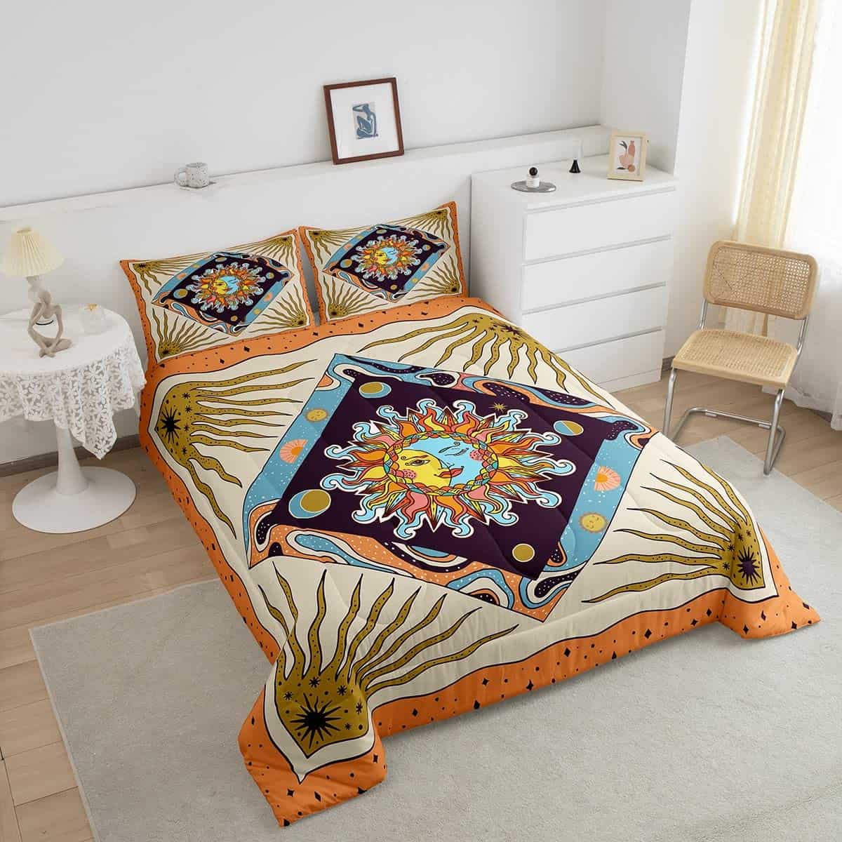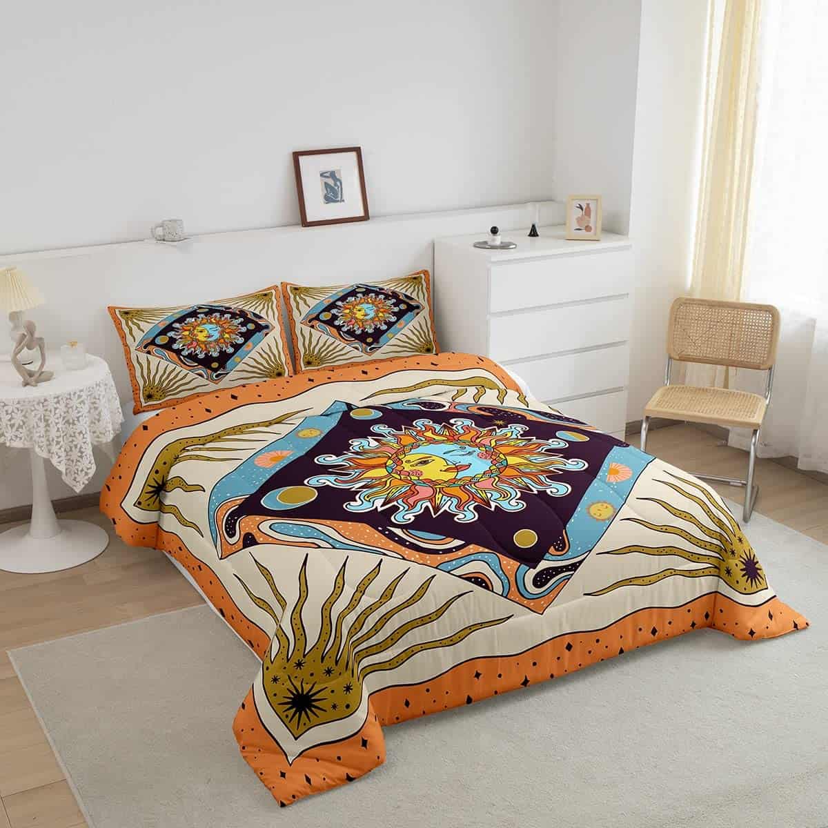 1. Información del Paquete: 1 Edredón Queen 90″ x 90″ y 2 Fundas de Almohada 30″ x 20″. Gran cobertura a lo largo de los lados de la cama. El Edredón y las Fundas están impresos solo en el lado frontal. 2. Diseño Único: Nuestras colecciones de estampados de ropa de cama utilizan los últimos y populares patrones de impresión digital 3D que satisfacen todo tipo de estilos de decoración del hogar, incluidos antiguo, vintage, moderno, occidental, gótico o de moda, etc. Adecuado para dormitorio, habitación de invitados, habitación de niños, casa de vacaciones, dormitorio, sala de juegos, RV o casa de vacaciones. 3. Material: Microfibra de Poliéster. Poliéster de alta calidad con relleno interno de microfibra ultrasuave. Suave, transpirable, higroscópico, acogedor, resistente a la decoloración y fácil de lavar, garantizando su gran sueño y comodidad durante todo el año. 4. Cuidado Fácil: Lavar a máquina en frío. Secar a baja temperatura. No se desvanece ni hace bolitas. Suave, transpirable y ligero. El edredón está envasado al vacío, puede presentar algunas arrugas al salir de la bolsa. Colóquelo al sol y golpéelo suavemente varias veces para que quede esponjoso. 5. Uso de Propósito Múltiple: El edredón no es muy pesado, pero aún proporciona suficiente calidez. Edredón acolchado perfecto para primavera, verano, otoño, invierno. Ordene 1 juego y úselo en todas las estaciones. Úselo como colcha, cubrecama, manta, cubierta de cama. Y tenemos muchos estilos de estampados para elegir, adecuados para todos los niños, niñas, hombres y mujeres.