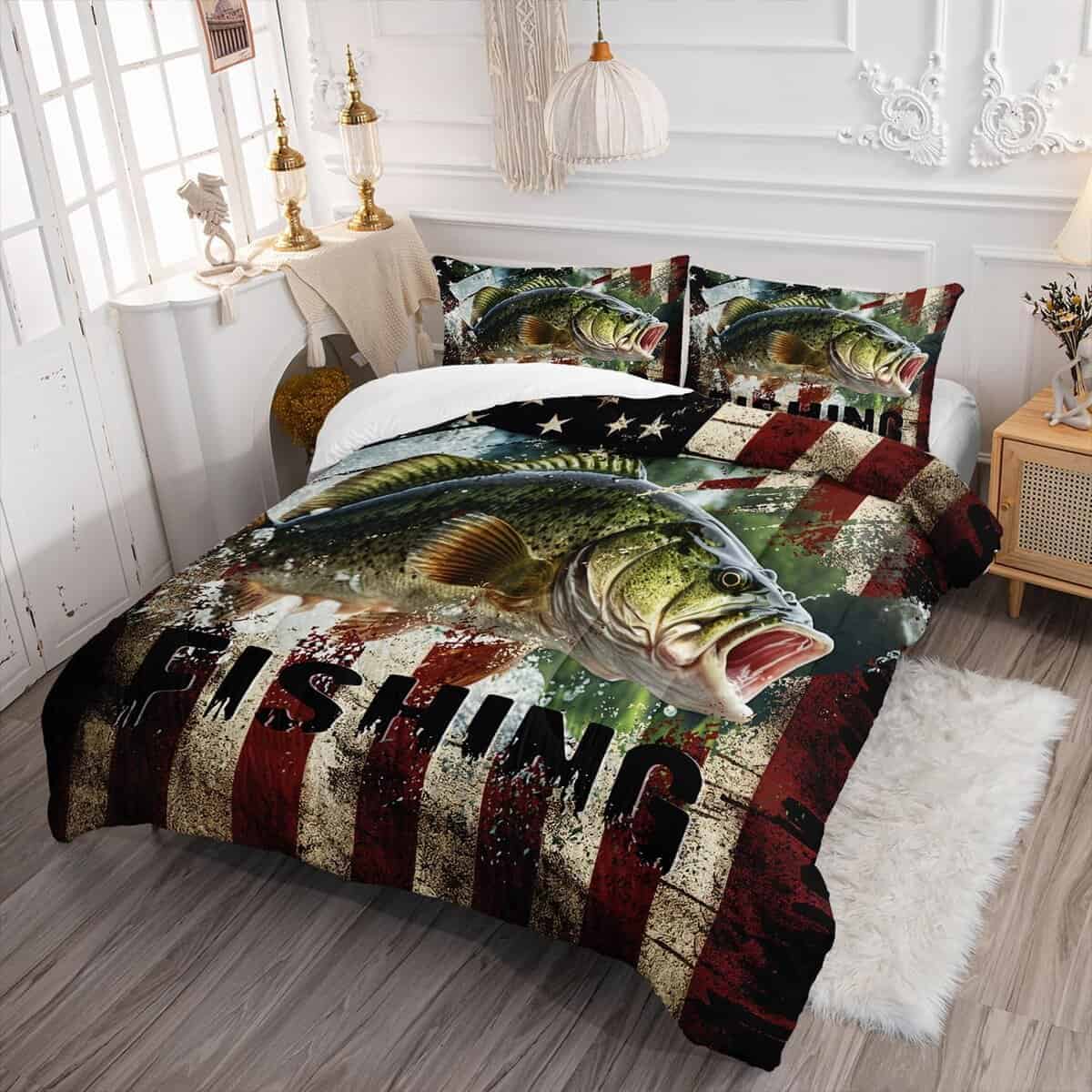 ¡3 Piezas de Juego de Edredón de Bandera Americana Floral de Pesca de Bajo Vintage!