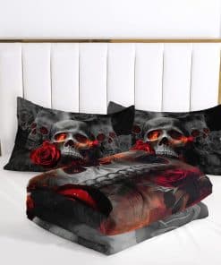 Juego de edredón Suncloris Gótico Calavera, Rojo Rosa Humo