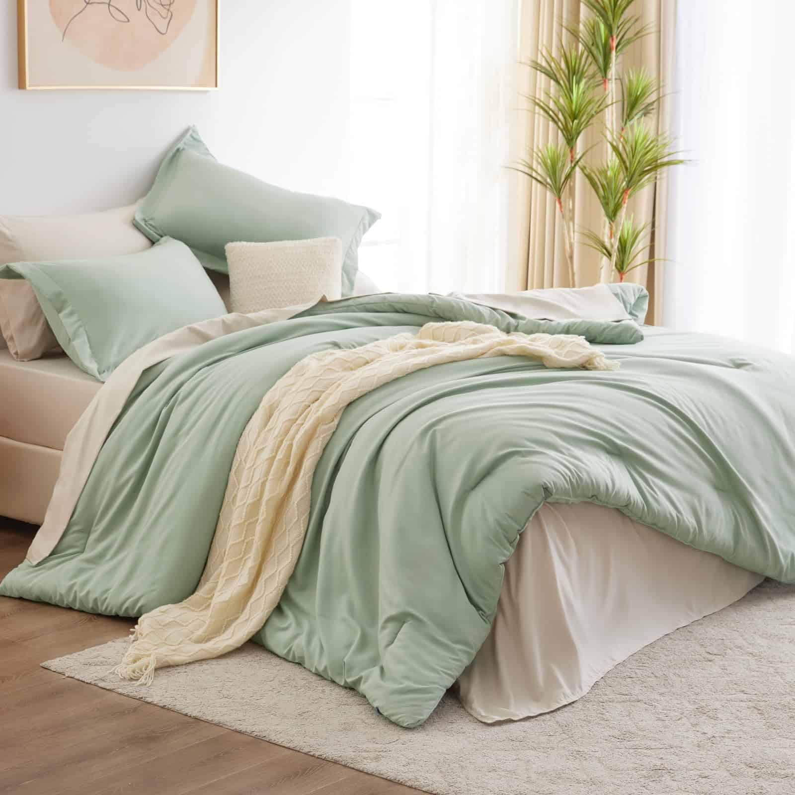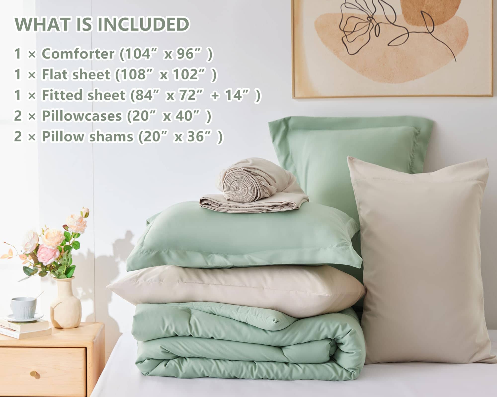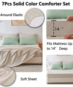 1. Elegancia Simple: Este set de cama muestra un refinado diseño de color contrastante. La interacción de colores entre las fundas de almohada y las sábanas agrega profundidad, mejorando sin esfuerzo cualquier estilo de decoración interior. 2. Perfecto para Todas las Estaciones: Hecho con tela de microfibra premium que es transpirable y absorbente al sudor. Además, el edredón está relleno de microfibra alternativa al plumón extremadamente suave. Este edredón mantiene el equilibrio perfecto entre peso y calidez, creando un espacio para dormir como en una nube para todas las estaciones. 3. Certificado de Seguridad: Este set de edredón de 7 piezas está certificado según el Estándar 100 de OEKO-TEX por cumplir con los criterios de prueba más altos para sustancias químicas dañinas y se ha encontrado inofensivo para los humanos. 4. Cuidado Fácil: Con la tela de microfibra premium y la técnica de teñido única de Cozylux, este set de ropa de cama para reina resiste el desvanecimiento, encogimiento y deslizamiento de las costuras después de lavarse. Lavar a máquina por separado en agua fría en un ciclo suave y secar en secadora a baja temperatura. 5. Set de Cama Incluido: Este set de cama tamaño California king incluye todo lo que necesita para una cama acogedora: 1 edredón (104″ x 96″), 2 fundas de almohada (20″ x 40″), 2 fundas de almohada (20″ x 36″ + 2″), 1 sábana ajustable (72″ x 84″ + 14″), 1 sábana plana (108″ x 102″)