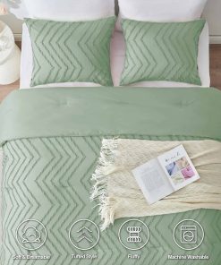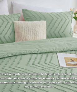 Chic y cómodo, este juego de edredón tamaño King de CozyLux en color verde salvia es la elección perfecta para darle un toque elegante y moderno a tu dormitorio. Con acentos bordados elegantes y patrones geométricos exquisitos, este juego de edredón boho neutro es tanto una declaración de estilo como una adición funcional a tu espacio.