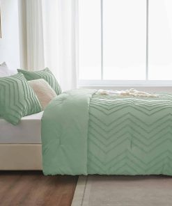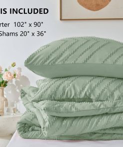 Juego de edredón tamaño King CozyLux color verde salvia – 3
