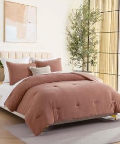 Juego de Edredón Tamaño King DUOMING en Rojo Desgastado – 3