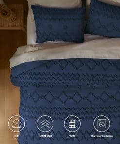 Este duradero y transpirable juego de edredón está hecho con una calidad inigualable. Puede soportar lavados tras lavados sin decoloración ni deslizamiento de las costuras. Este juego de edredón es lavable a máquina. Simplemente lávalo a máquina en un ciclo suave por separado con agua fría. Seca al aire o en secadora a baja temperatura. El juego de edredón tamaño King incluye 1 edredón blanco (102×90 pulgadas) y 2 fundas de almohada (20×36 pulgadas) sin relleno de almohada.