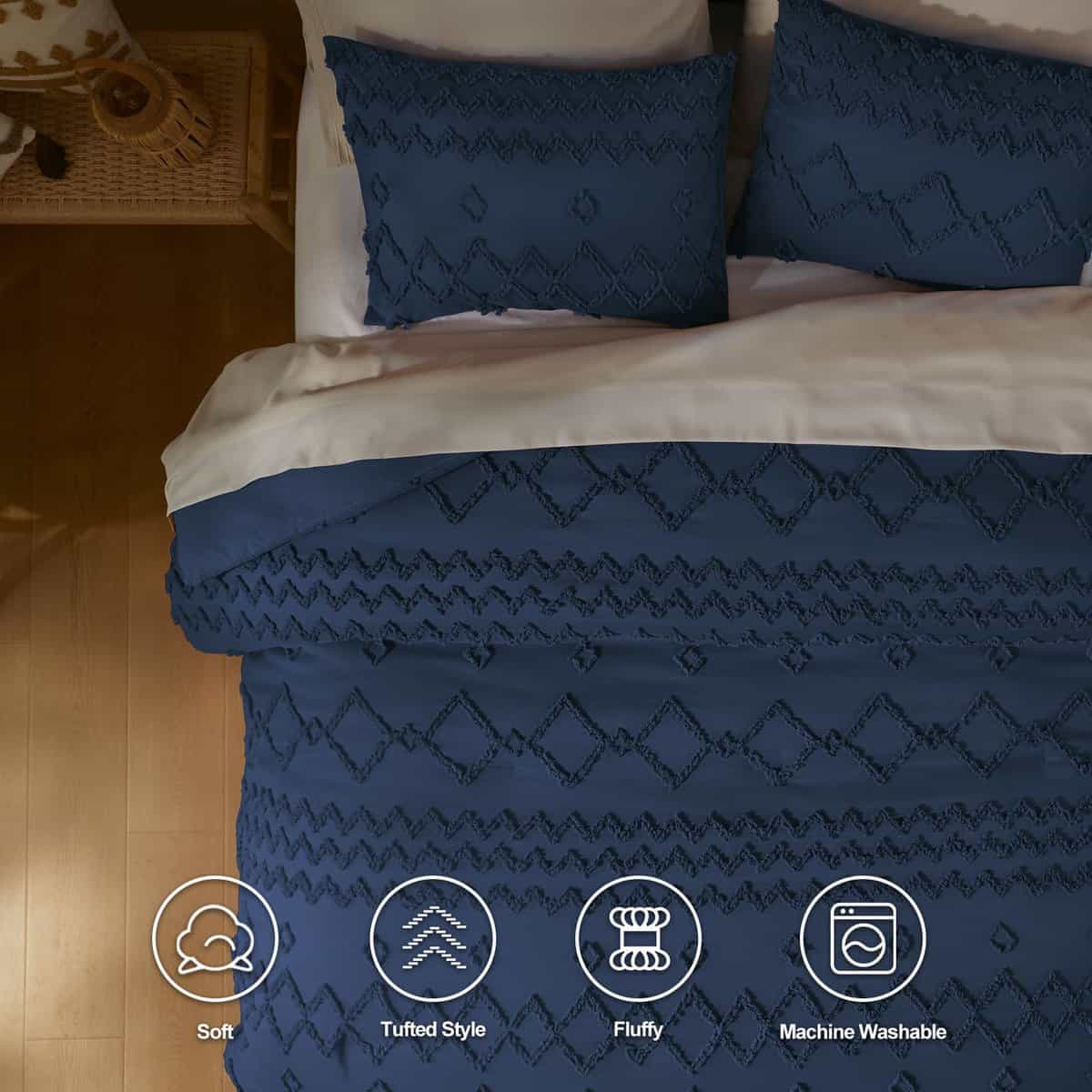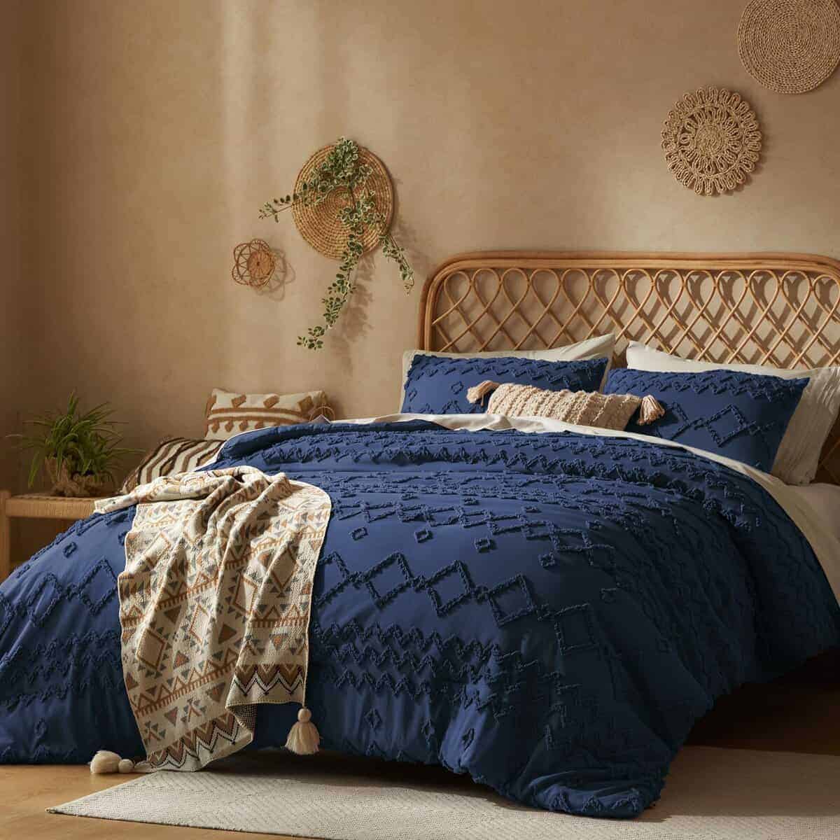 Juego de edredón tamaño King – Edredón azul marino tamaño