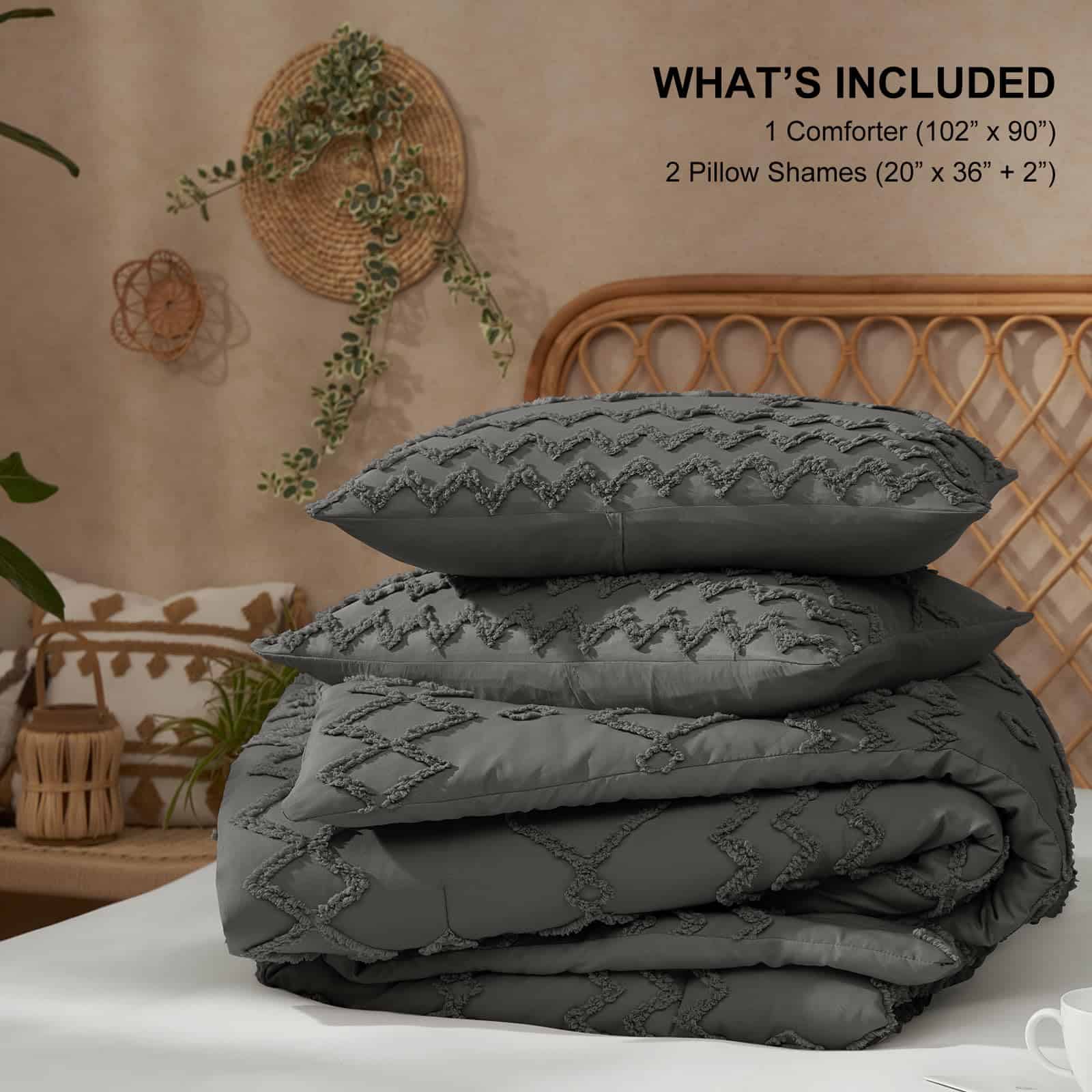 Juego de edredón tamaño King HIMEET – Edredón gris tamaño