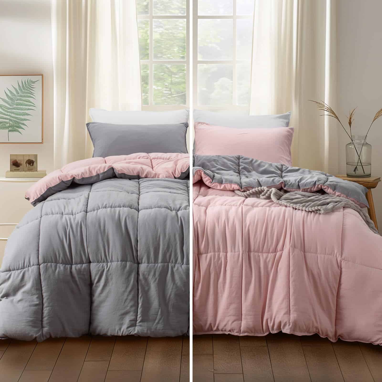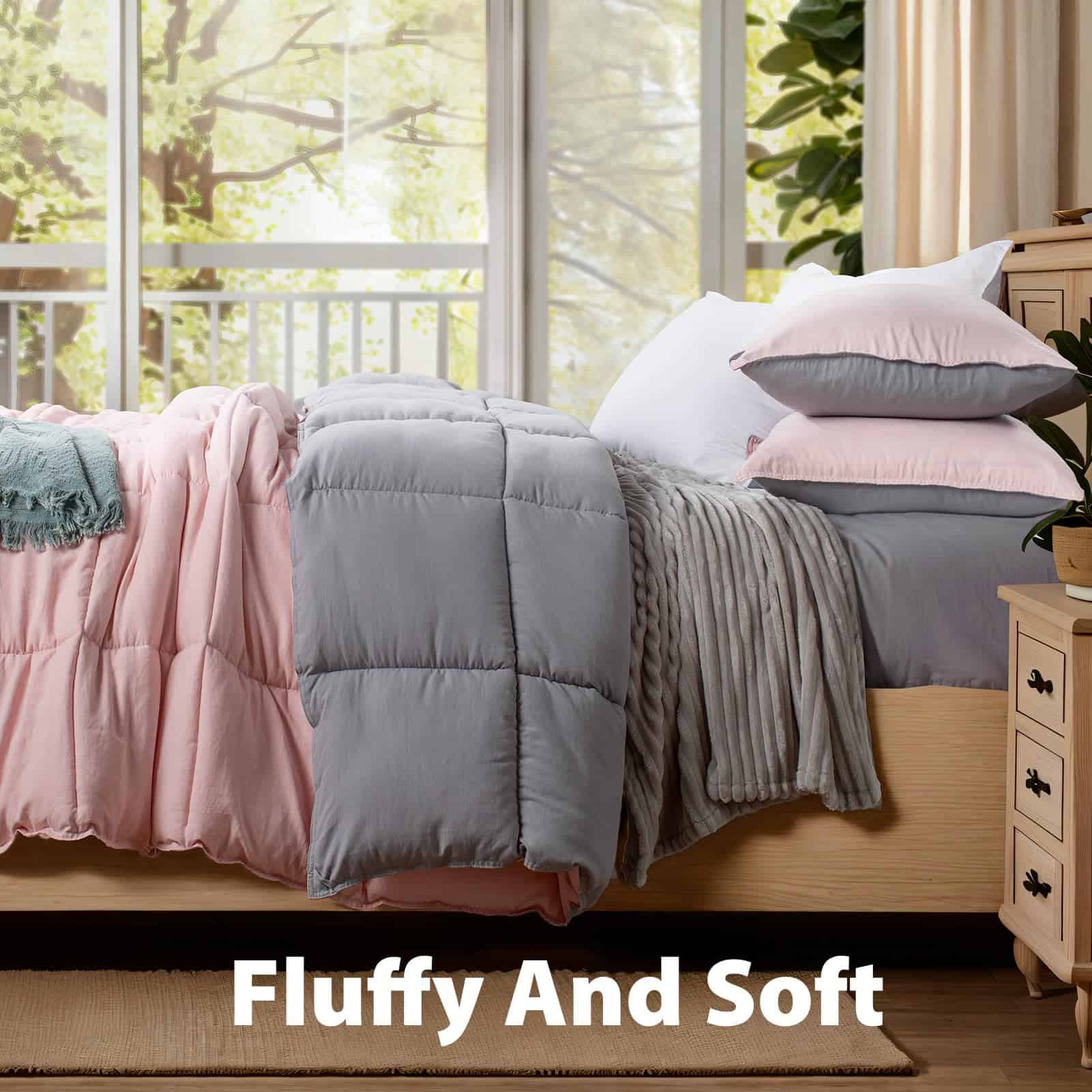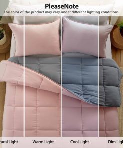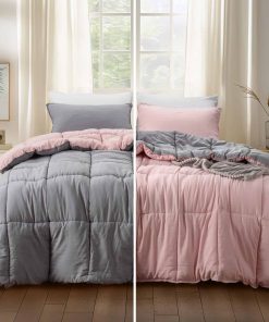Este set de edredón tamaño king de KASENTEX es la opción perfecta para añadir un toque de elegancia y comodidad a tu dormitorio. Con un diseño reversible en rosa potpourri/plata cuarzo, este set de 3 piezas incluye un edredón tamaño queen de 88″x90″ y dos fundas de almohada a juego de 21″x37″, todo confeccionado con tela ultra suave y duradera. El relleno hipoalergénico de fibra alternativa a plumas proporciona una suavidad y comodidad excepcional, ideal para aquellos con alergias o sensibilidades. La construcción acolchada en caja asegura que la fibra se distribuya uniformemente y evita que se desplace, mejorando la durabilidad del edredón y proporcionando una sensación lujosa para una noche de sueño reparador. Este set de edredón es lavable a máquina, lo que facilita su mantenimiento y conservación. La fibra hipoalergénica es absorbente de la humedad, lo que ayuda a retener la esponjosidad del edredón. Para un mejor cuidado, se recomienda lavar a máquina en agua fría, secar a baja temperatura y evitar blanquear o planchar. El set viene sellado al vacío para protegerlo del polvo y la humedad, asegurando que llegue en condiciones impecables y listo para regalar o almacenar.