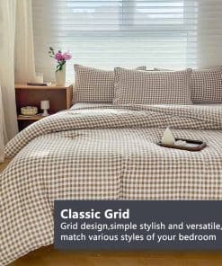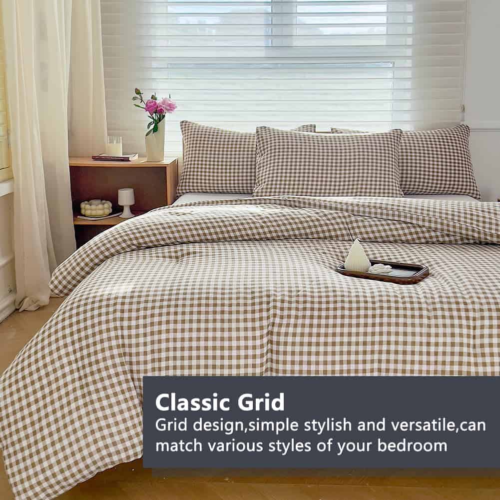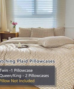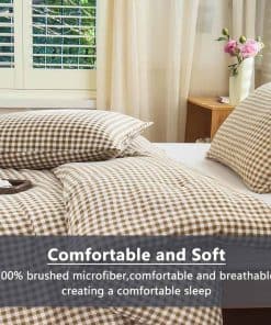 1. Juego de edredón tamaño King de lujo: El juego de edredón de cama tamaño King incluye 3 piezas: 1 edredón de cama de 104″x 90″ / 2 fundas de almohada de 20″x 36″. Transforma tu dormitorio en un oasis de confort y estilo con nuestro juego de edredón tamaño King. Este exquisito conjunto agrega un toque de lujo y elegancia a tu espacio, prometiendo noches de descanso y mañanas hermosas. 2. Diseño de cuadros clásico: Nuestro juego de edredón a cuadros presenta un patrón clásico de cuadros marrón que emana encanto y sofisticación. El duradero diseño de cuadros aporta una sensación de calidez y tradición a la decoración de tu dormitorio. 3. Calidad premium: Fabricado con materiales de alta calidad, nuestro juego de edredón de cama a cuadros marrón ofrece confort y durabilidad superiores. La tela suave y suntuosa garantiza noches de sueño reparador, noche tras noche. 4. Solución completa de ropa de cama: Este conjunto de edredón de cama a cuadros incluye todo lo que necesitas para vestir bien tu cama. Viene con un edredón, fundas de almohada a juego y almohadas decorativas coordinadas, convirtiéndolo en una elección conveniente y elegante. 5. Conveniencia de fácil cuidado: Nuestro juego de edredón tamaño King es lavable a máquina y fácil de mantener, lo que te permite disfrutar de un dormitorio fresco y prístino con un esfuerzo mínimo. Es la combinación perfecta de moda y practicidad, diseñada para facilitarte la vida mientras mejoras tu hogar.