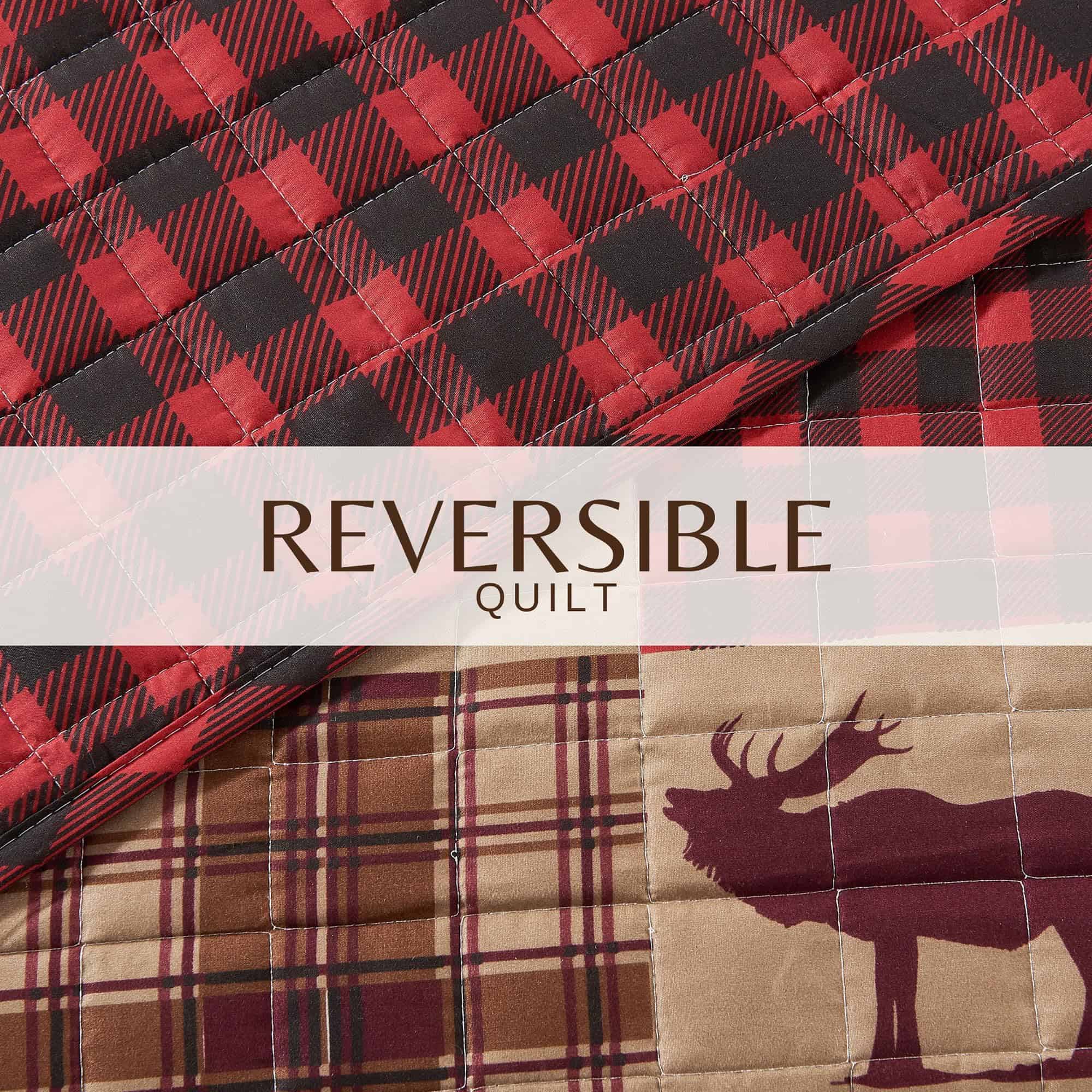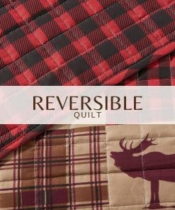 1. Estampado Rústico de Lodge: Completa tu decoración de cabaña o casa de lago con un juego de edredón inspirado en el bosque rústico y de lodge. Este juego cuenta con todo, desde elementos de la naturaleza, incluidos animales y árboles, hasta patrones de cuadros reversibles complementarios con fundas de almohada a juego. Los diseños en las fundas de almohada pueden variar.
