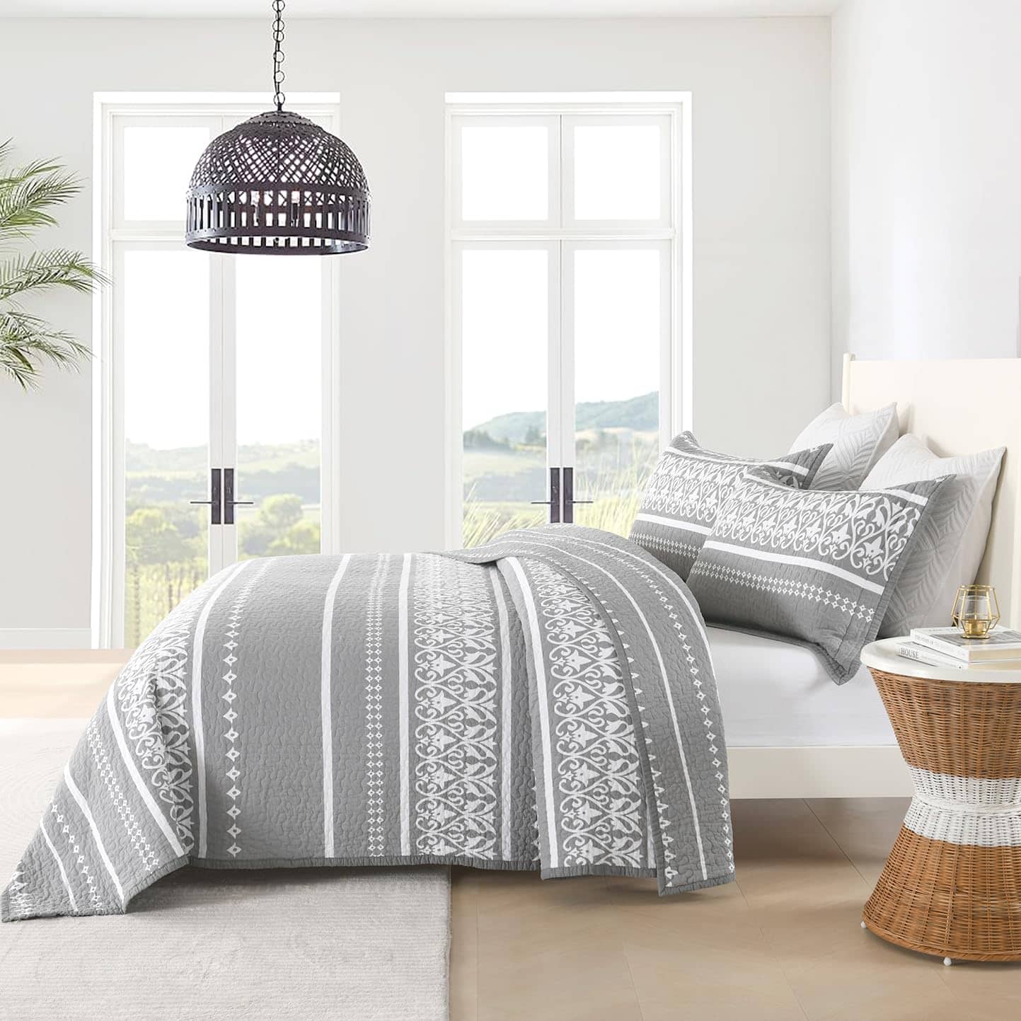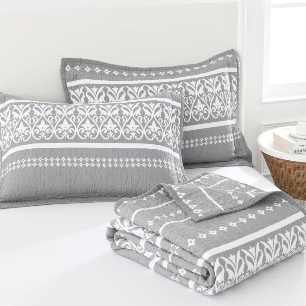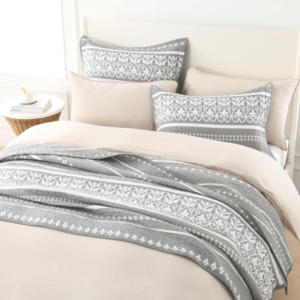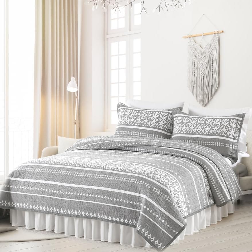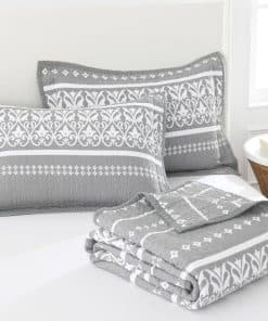 3. Juego de cama de 3 piezas: Este juego de colcha acolchado viene con un edredón king (98 x 106) y 2 fundas de almohada (20 x 36) es un edredón boho la mejor opción de regalo para tus padres y amigos.