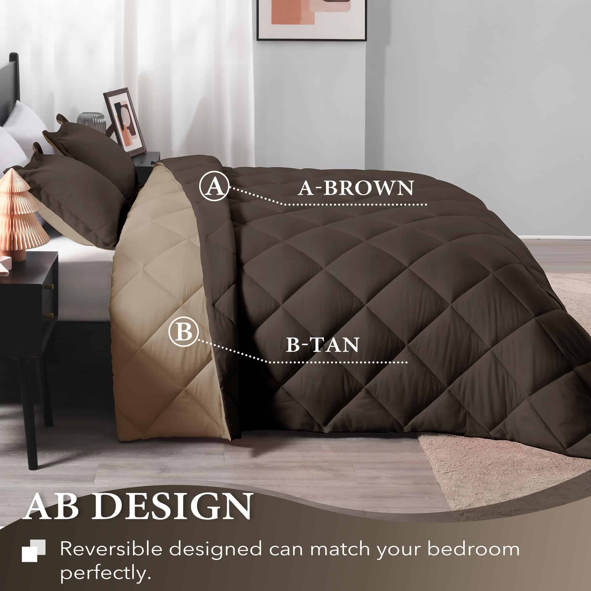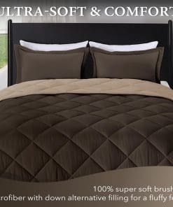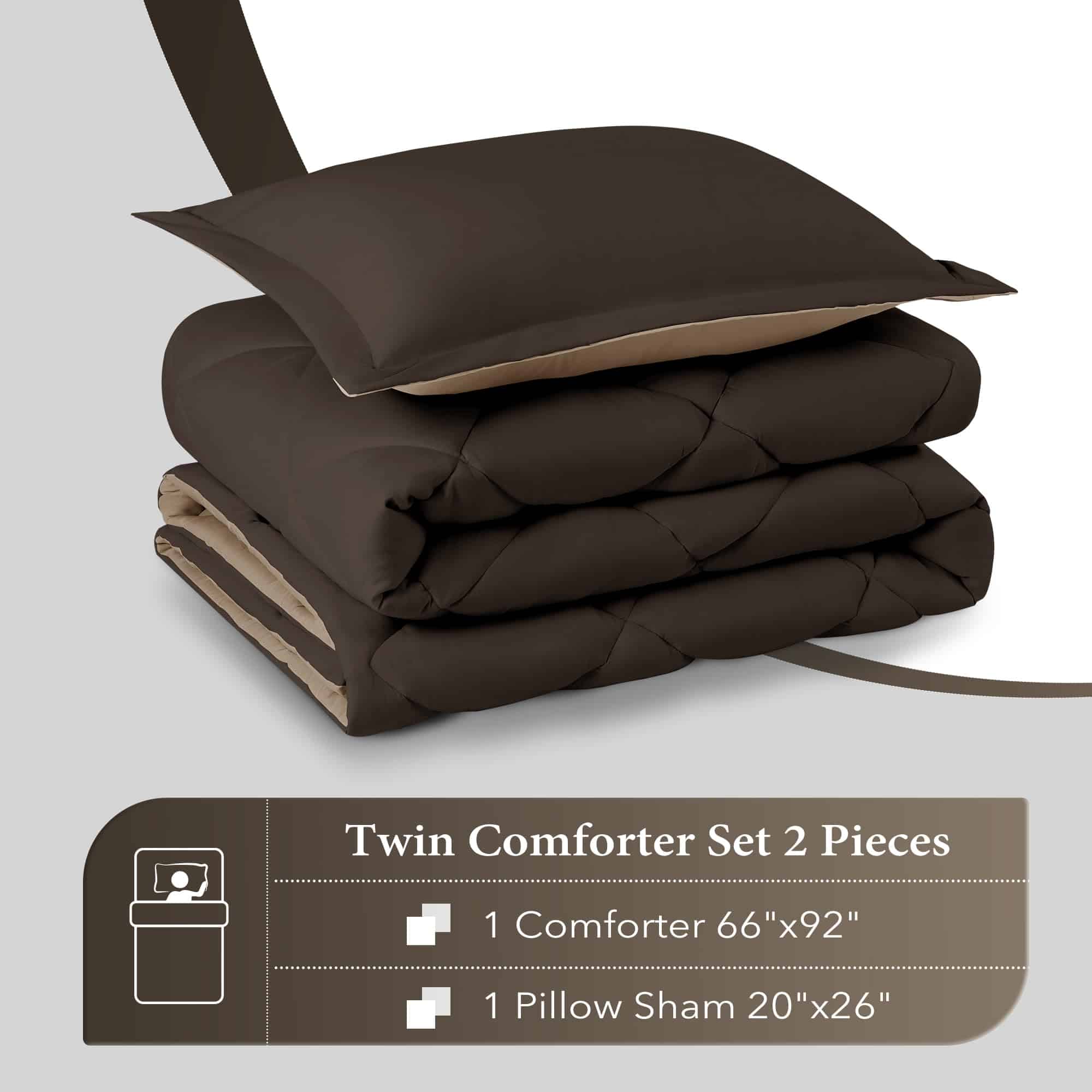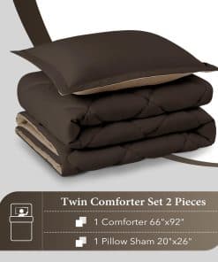 Juego de edredón Twin Downluxe – Edredón marrón y beige