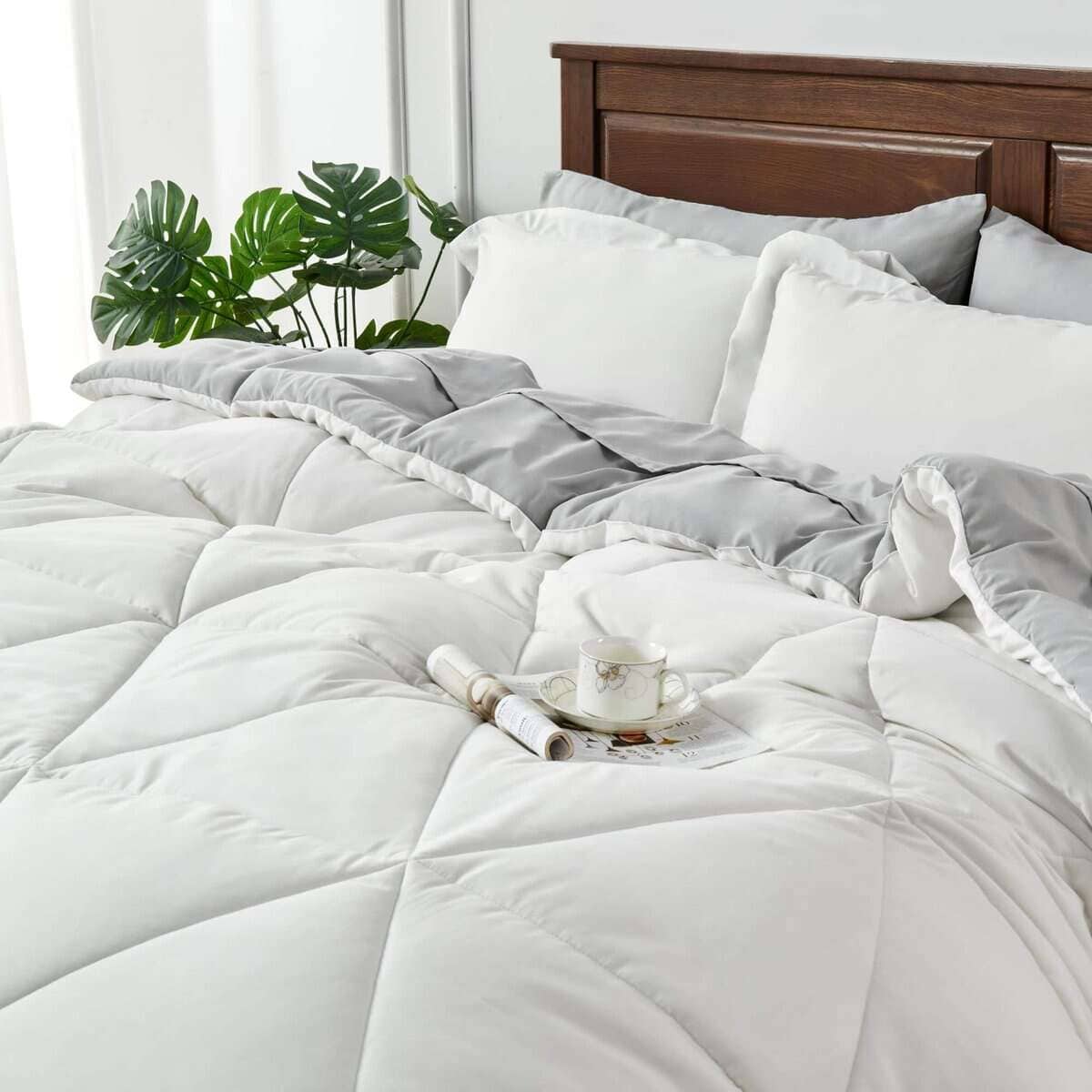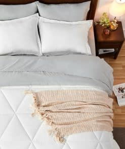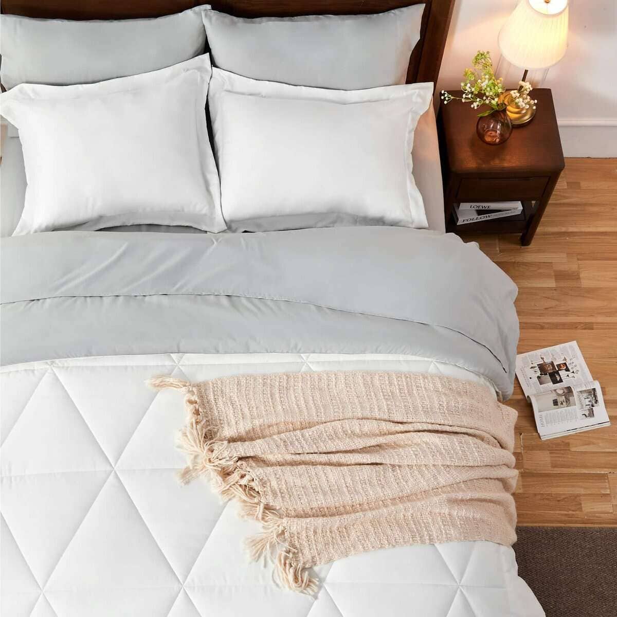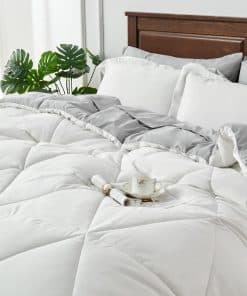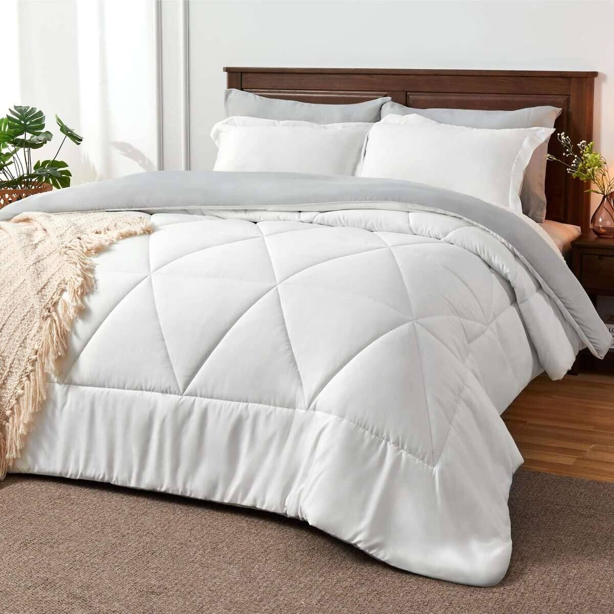 Juego de edredón Twin XL BEDELITE 5 Piezas -Blanco/Gris Clar