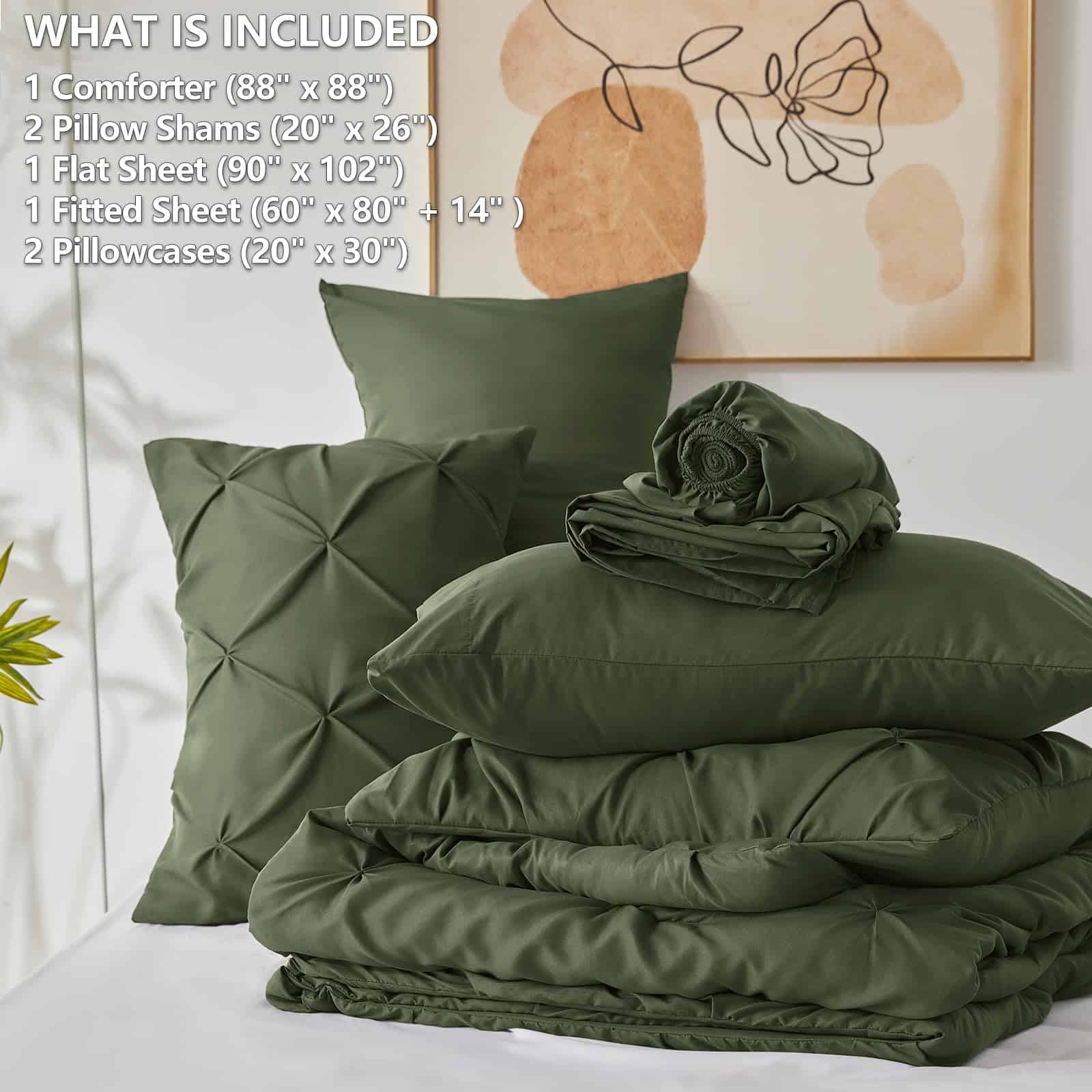 Juego de Edredón Verde Oliva CozyLux Queen 7 Piezas Set de