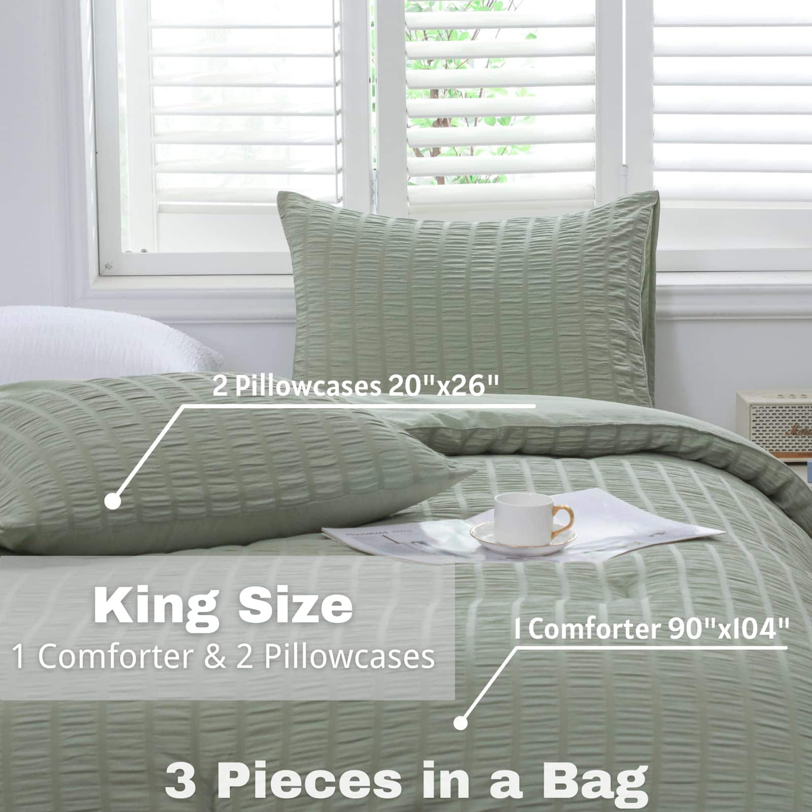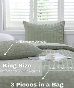 Juego de edredón verde salvia HAOWANER king, 3 piezas,