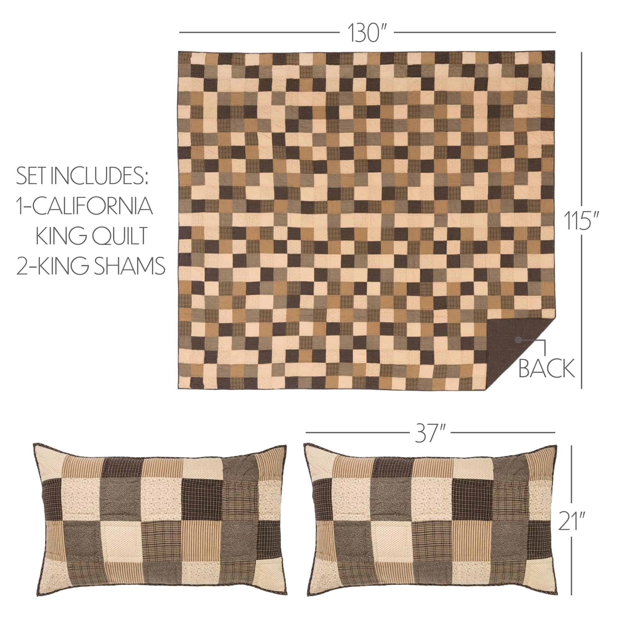 El juego de edredón VHC Brands Kettle Grove de 3 piezas es ideal para darle un toque campestre a tu dormitorio. Con un diseño de retazos primitivo en negro y crema, este juego incluye una colcha de tamaño California King y dos fundas de almohada a juego. Hecho con materiales de alta calidad, este juego de edredón es duradero y fácil de mantener. Añade un toque de calidez y confort a tu dormitorio con este hermoso juego de edredón.