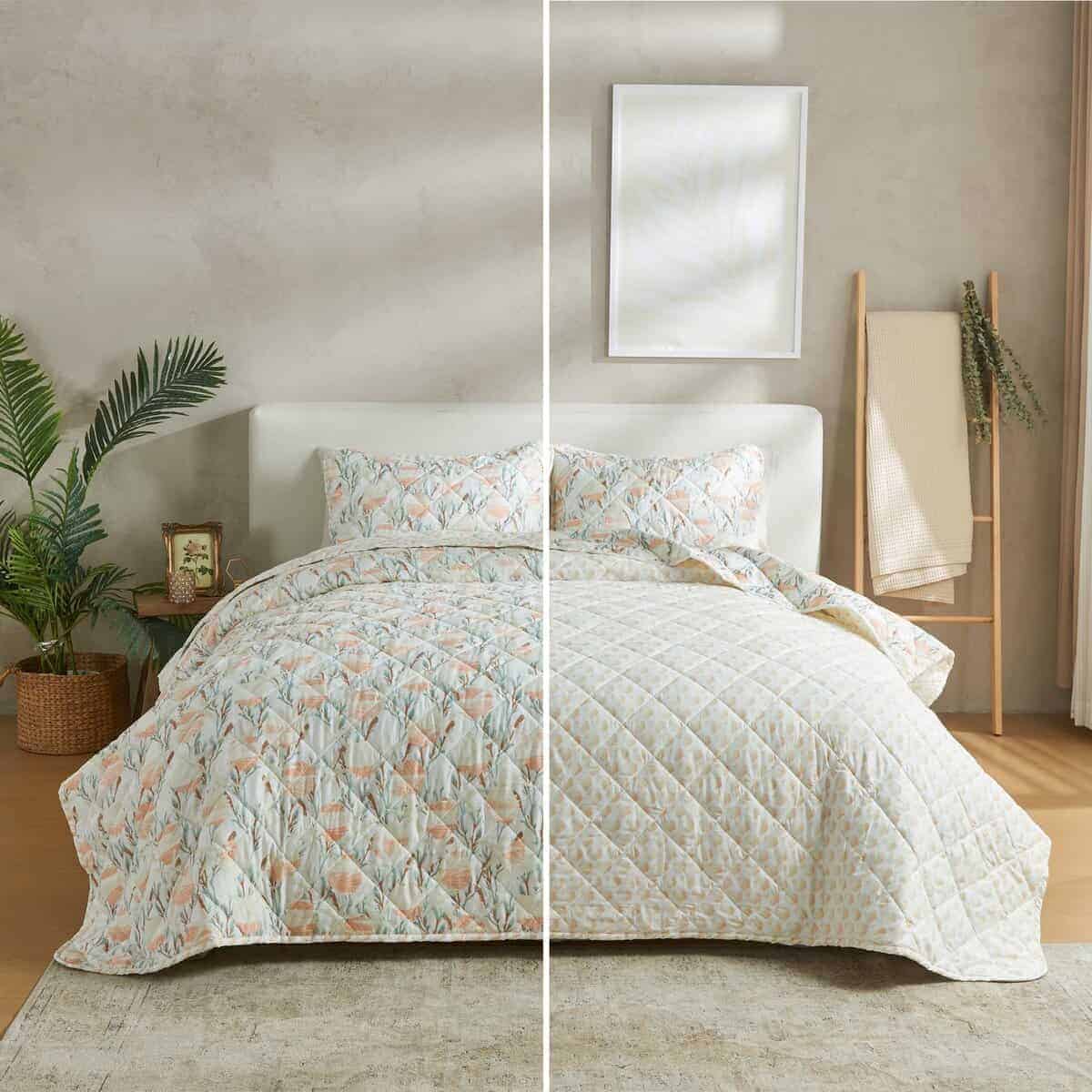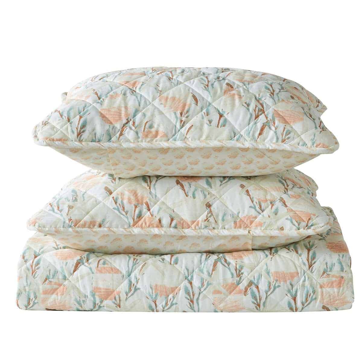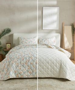 4. ¿Qué incluye este juego de ropa de cama 1 colcha individual. Este edredón individual mide 90″ x 66″ y viene con una funda de almohada estándar de 26″ x 20″. Este edredón extra suave y duradero cuenta con una construcción gruesa, pero ligera, perfecta para superponerse. Esta colcha de juego de edredón presenta una puntada única y un diseño costero vintage.