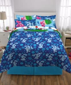 Los detectives infantiles están en el caso cuando se trata de la comodidad a la hora de dormir. Les encanta ayudar a su amigo cachorro Blue y a sus ayudantes a encontrar las pistas de todo tipo de misterios cotidianos en Blue’s Clues de Nickelodeon. Ahora pueden seguir divirtiéndose en casa con este lindo y colorido juego de cama «Wake Up With Blue».El juego de microfibra de alta calidad incluye un edredón, sábana ajustable, sábana plana, funda(s) de almohada y funda(s) de almohada. Para diversión y versatilidad, un lado del edredón reversible presenta a Blue, Magenta, Tickety Tock, Mr. Salt, Mrs. Pepper, Slippery Soap y el Buzón contra un telón de fondo de cielos azules soleados, mientras que el otro lado presenta un estampado de Blue en todo el frente que resalta contra un tono más oscuro de azul. Los colores e imágenes coordinadas en las sábanas con temática de Blue’s Clues, funda(s) de almohada y funda(s) de almohada ayudan a crear un aspecto cohesivo.Nickelodeon hace que sea divertido aprender habilidades creativas para resolver problemas en Blue’s Clues. Ciertamente no es ningún misterio por qué a tus hijos les encantará acurrucarse en este juego de cama suave y elegante con el colorido elenco de personajes del programa.El juego está disponible en un juego de cama de 5 piezas de tamaño twin o un juego de cama de 7 piezas de tamaño completo.
