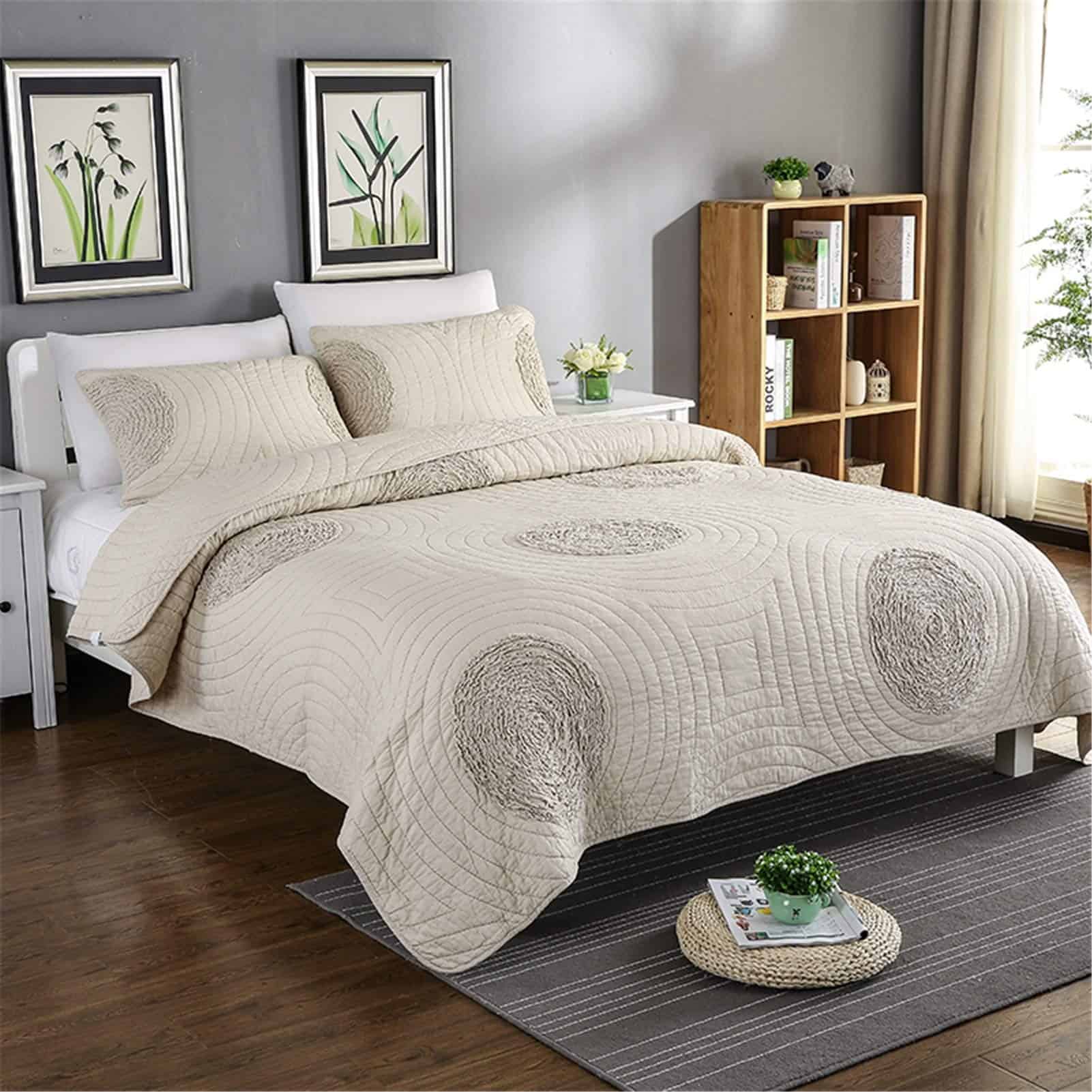 Juego de Edredones ABREEZE Tamaño Queen 100% Algodón Beige