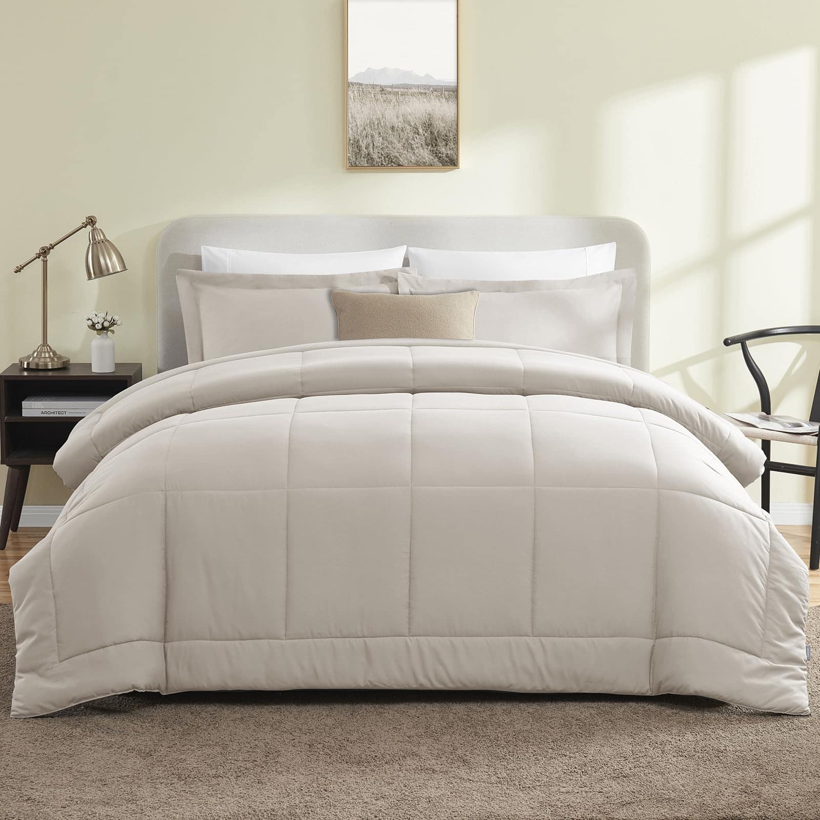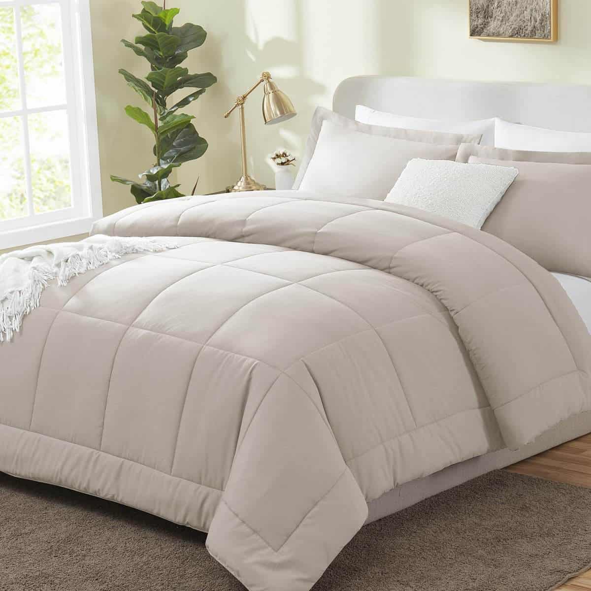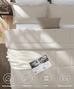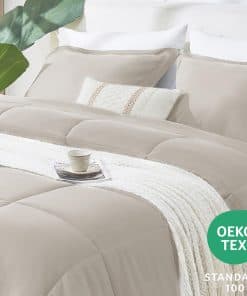 El juego de edredón CozyLux California King Size Comforter Sets es la elección perfecta para aquellas personas que buscan una cómoda y elegante ropa de cama. Confeccionado con un relleno de microfibra de alta calidad y un diseño acolchado, este juego de edredón ofrece suavidad, volumen y durabilidad excepcionales. La certificación OEKO-TEX garantiza que el juego de edredón es seguro y libre de sustancias nocivas. El edredón está hecho de un solo trozo de fibra de relleno, lo que lo hace más duradero que otros edredones similares en el mercado. La tecnología de acolchado en caja asegura que los rellenos permanezcan en su lugar, sin preocupaciones por fugas de relleno o hilos sueltos. El juego de edredón incluye 1 edredón de 104×96 pulgadas y 2 fundas de almohada de 20×36 pulgadas. Se recomienda lavar y secar el edredón a baja temperatura antes del primer uso para que se infle correctamente. Los juegos de ropa de cama son lavables a máquina, lo que facilita su cuidado y mantenimiento. Disfruta de una suavidad duradera y de no formación de bolitas lavando en ciclo suave con agua fría y secando al sol o en secadora a baja temperatura. Descansa cómodamente con el juego de edredón CozyLux