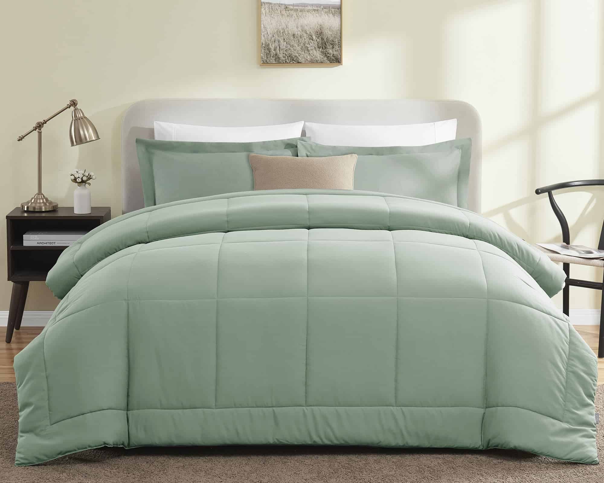 Juego de Edredones CozyLux Tamaño Queen – Verde Salvia