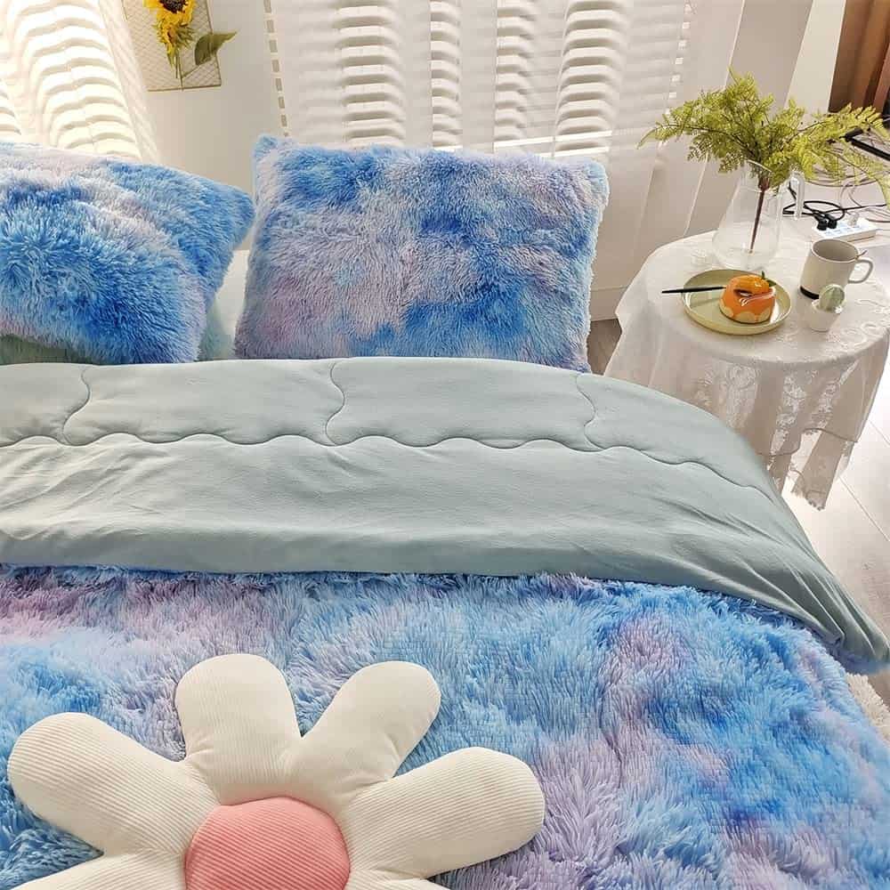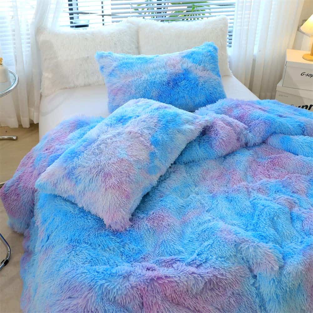Juego de edredones Falso Piel de Peluche de Colores Tie-Dye
