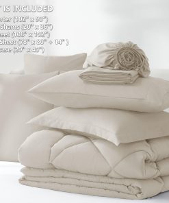 Los juegos de edredón king size CozyLux tienen una tela de microfibra premium que es transpirable y absorbe el sudor, ofreciendo una noche de descanso fabulosa. El edredón está relleno con microfibra alternativa muy suave que es amigable para aquellos que son alérgicos a las plumas y plumón de ganso. La sábana ajustable de bolsillo profundo se adapta a colchones de hasta 14″ de profundidad, garantizando que se mantenga en su lugar incluso si te mueves mucho en la cama. El edredón presenta un acolchado en caja duradero que ofrece un aspecto sofisticado junto con simplicidad y mantiene el relleno estable en su lugar. El juego de cama en una bolsa de tamaño king incluye 1 edredón de 102″x90″, 2 fundas de almohada de 20″x36″, 1 sábana plana de 108″x102″, 1 sábana ajustable de 78″x80″+14″ y 2 fundas de almohada de 20″x40″. Empaquetado en una bolsa al vacío, puedes secarlo a baja temperatura o golpear suavemente el edredón mientras lo horneas al sol para devolverle su esponjosidad. Estos juegos de ropa de cama son lavables a máquina, lo que te ahorra tiempo y energía en el cuidado. Se recomienda lavarlos en ciclo suave con agua fría para mantener la suavidad y prevenir el apelotonamiento. CozyLux se compromete a ofrecer productos premium y un servicio atento para garantizar tu satisfacción. ¡Contáctanos si tienes alguna pregunta y haremos todo lo posible para resolver los problemas rápidamente!