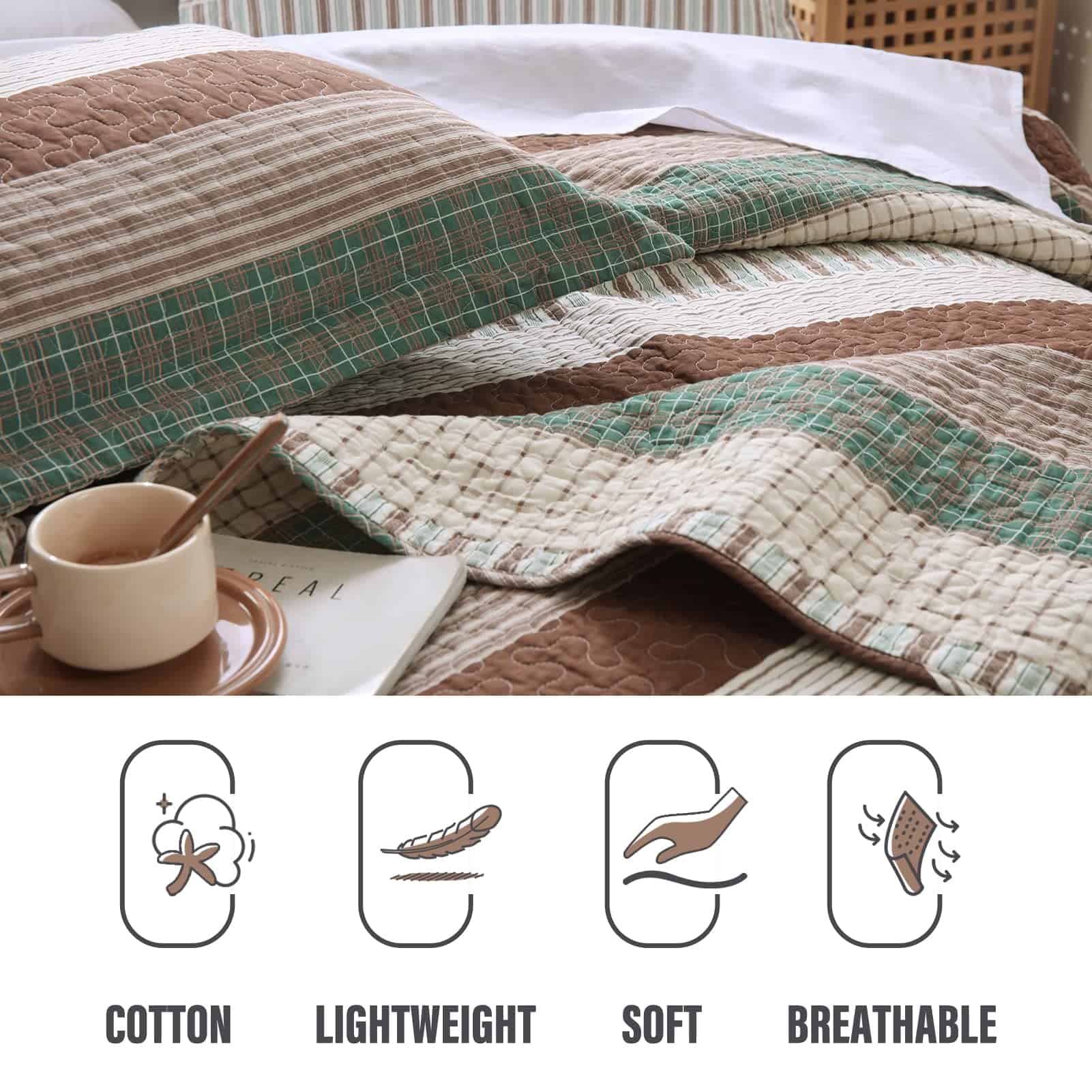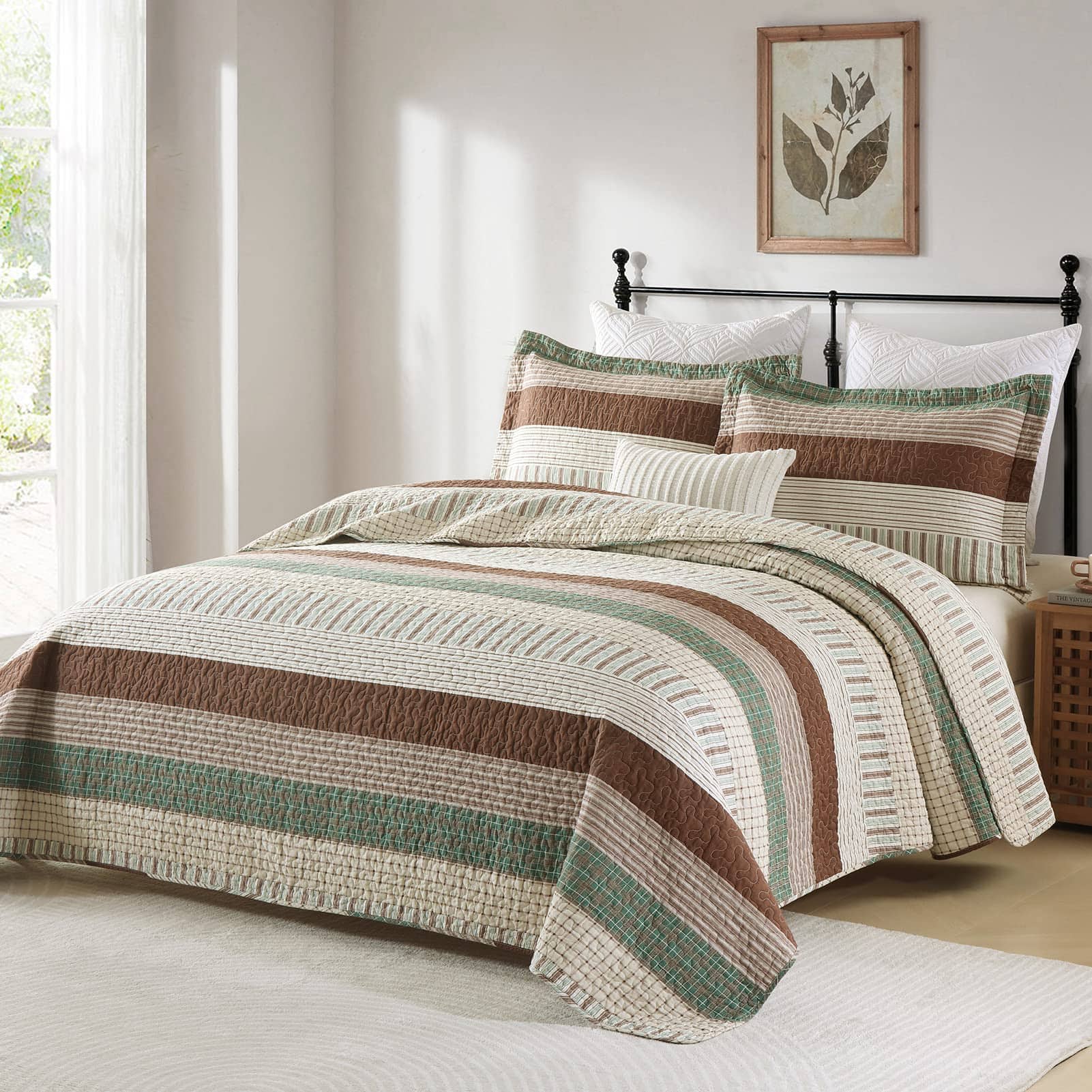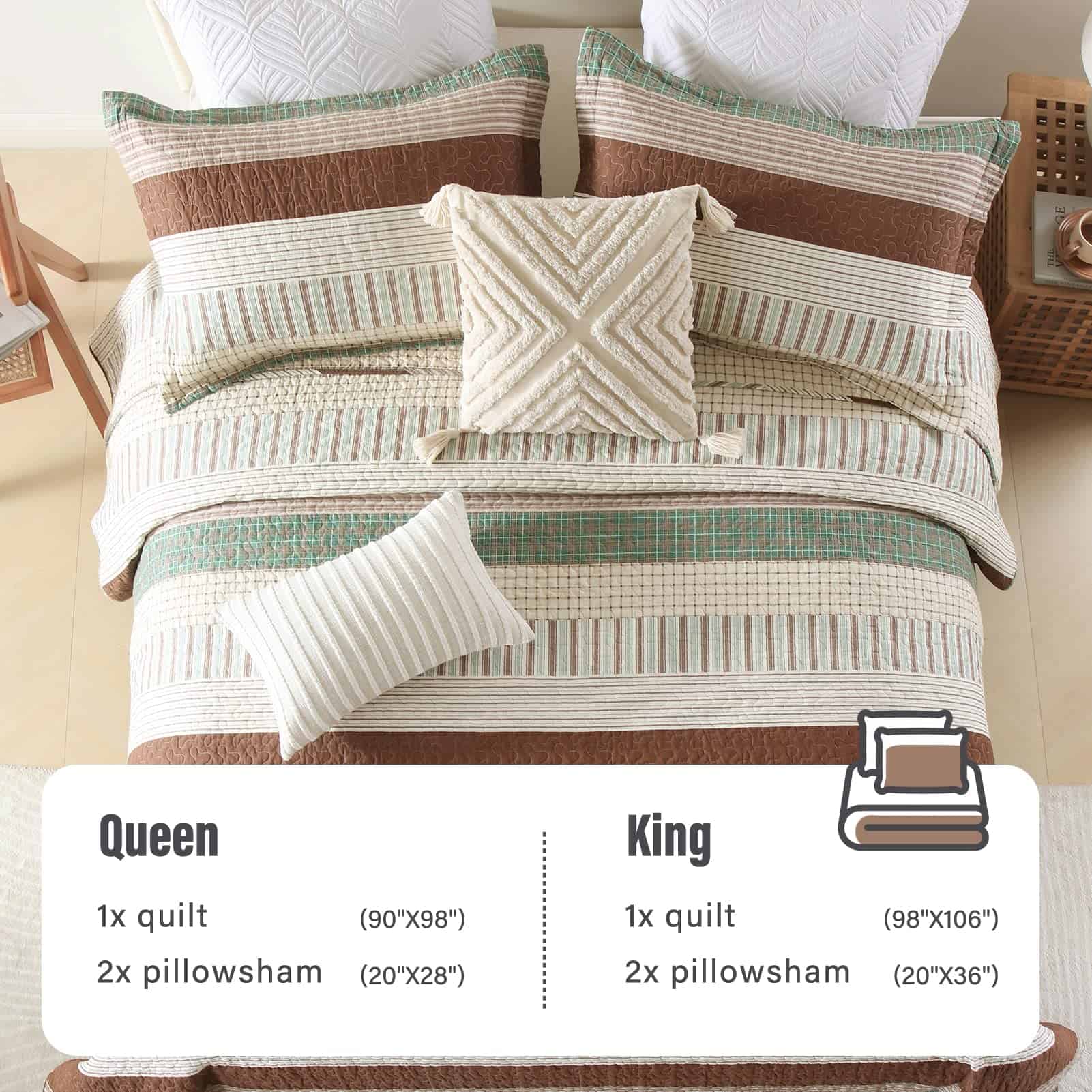 El edredón king size de 100% algodón es perfecto para proporcionarte un sueño saludable y confortable. Con un diseño a rayas y una construcción de tres capas, este edredón es adecuado para usar durante todo el año. El juego de edredón de 3 piezas incluye un edredón king y dos fundas de almohada a juego. La facilidad de cuidado de este edredón hace que sea una excelente opción para tu hogar. Disfruta de la calidez y comodidad que este edredón de algodón te brinda, combinando estilo y funcionalidad.