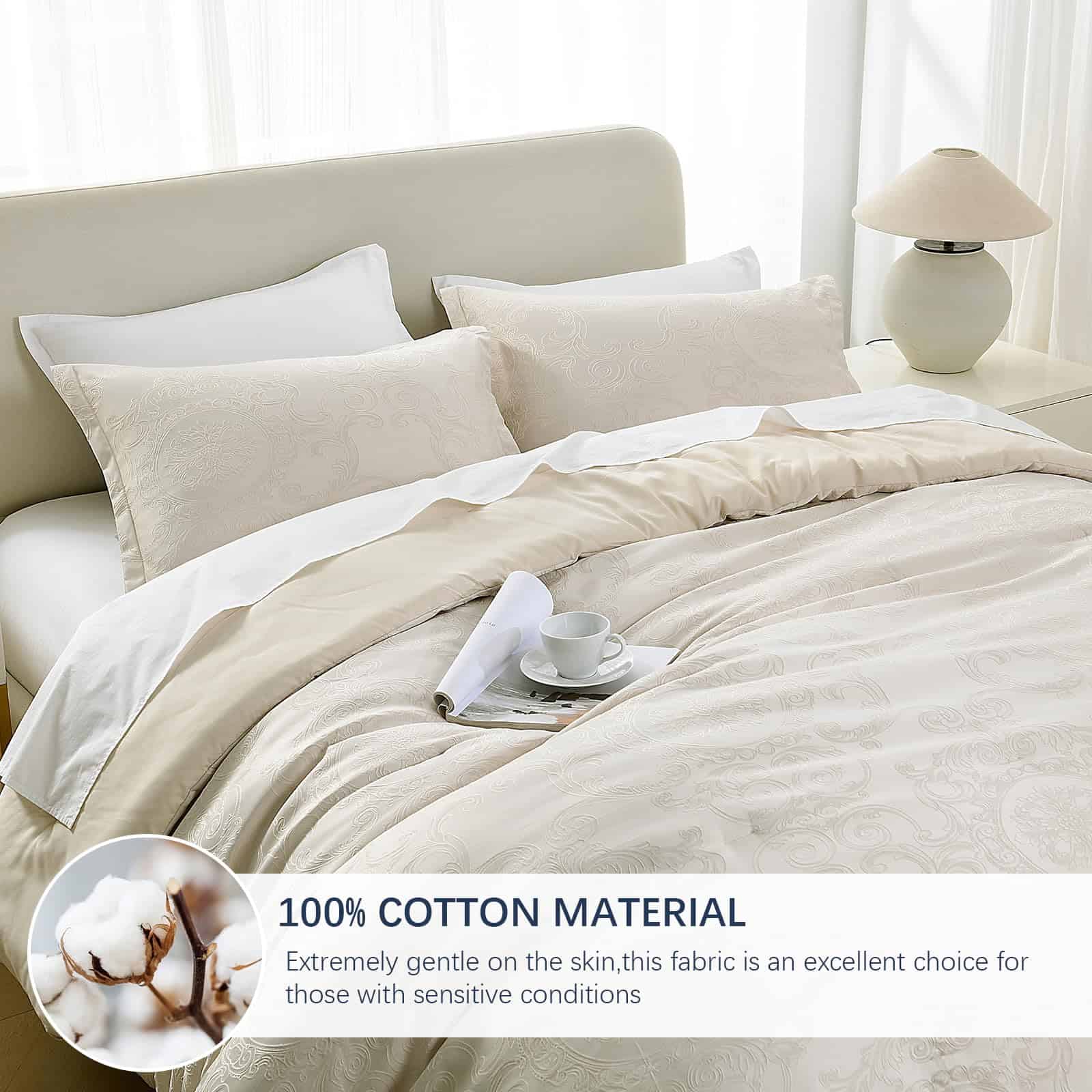 1. Relleno Premium elaborado con una cubierta de algodón 100% de fibra larga y relleno de microfibra Premium para una suavidad tipo nube. Este edredón transpirable y esponjoso es ligero, ofreciendo una calidez excepcional para un sueño cómodo.