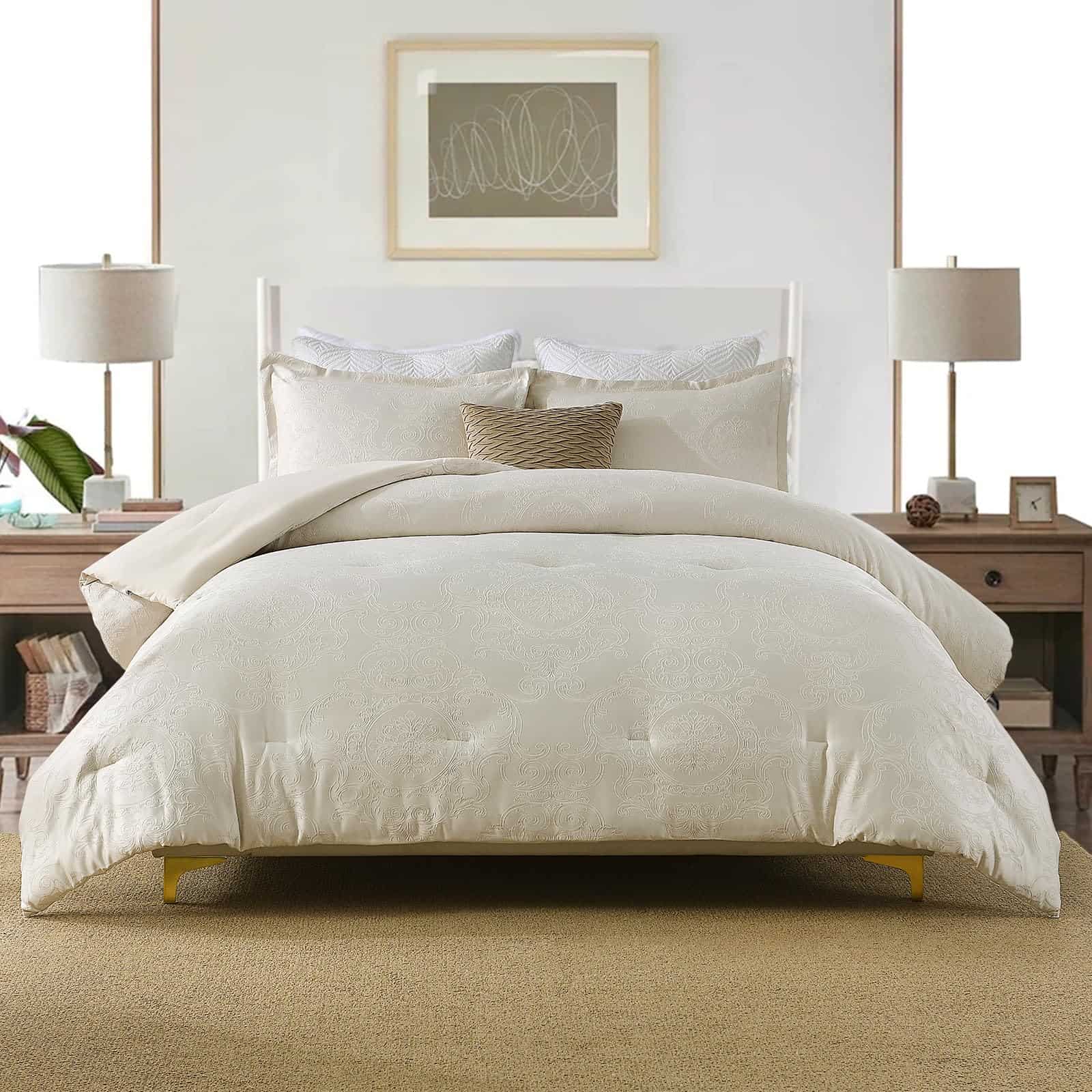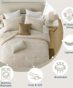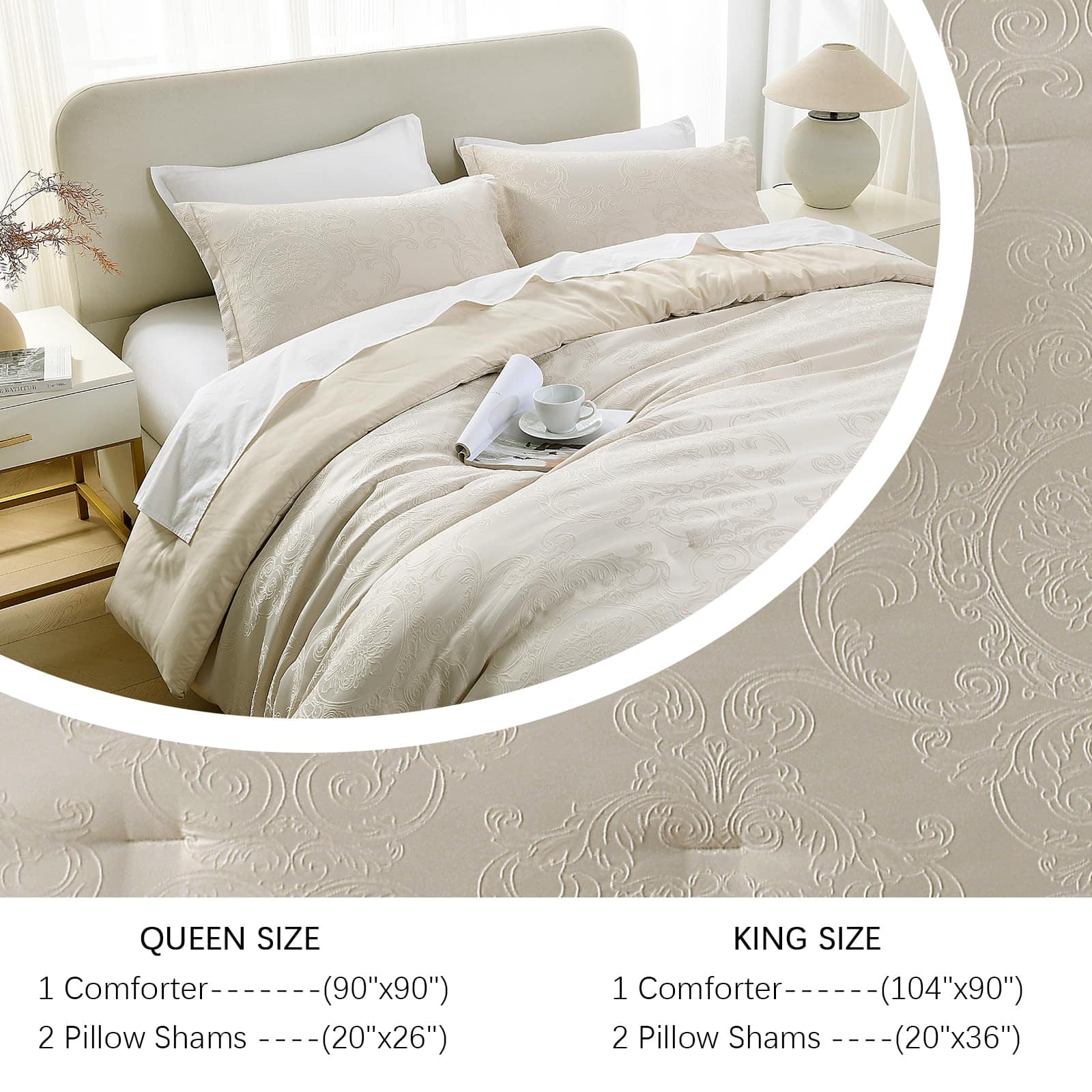 5. Qué incluye El juego de edredones tamaño King incluye 1 edredón (90×104 pulgadas) y 2 fundas de almohada (20×36 pulgadas); Certificado por el Estándar 100 de OEKO-TEX, cumple con los criterios de prueba más altos para sustancias químicas dañinas, garantizando resistencia al deslizamiento de costura después del lavado frecuente.