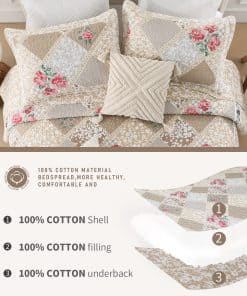 Edredón de Tamaño Queen Finlonte real patchwork floral marrón rojo gris cuadros granja 100% algodón edredón queen, edredón de cama reversible ligero juego de edredón, 3 piezas. Este juego de edredón incluye 1 edredón queen (90 x 98 pulgadas) + 2 fundas de almohada (20 x 28 pulgadas). Edredón reversible con diseño de patchwork floral real, patrón floral único y excelente mano de obra de doble costura. Ideal como regalo para tus padres y amigos. Diseño rústico con colores marrón y rojo, edredón reversible que cambia el aspecto de tu dormitorio al instante y lo suficientemente fresco para las temperaturas más cálidas. Este edredón tamaño queen está diseñado para uso durante todas las estaciones. Es ligero como una manta en primavera y verano, y lo suficientemente cálido como un juego de edredón en otoño e invierno. Fácil cuidado – Lavar a máquina por separado en agua fría con detergente suave. Secar a baja temperatura para garantizar la longevidad de la suave y colorida tela de algodón. Si deseas comprar fundas de almohada adicionales, puedes buscar el asin B0CCP523SV.
